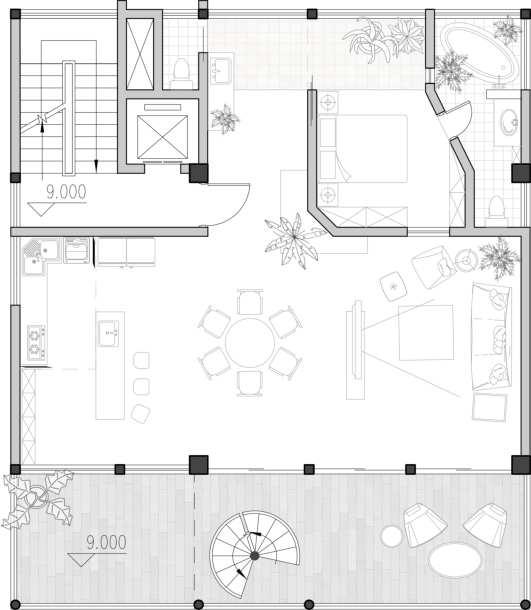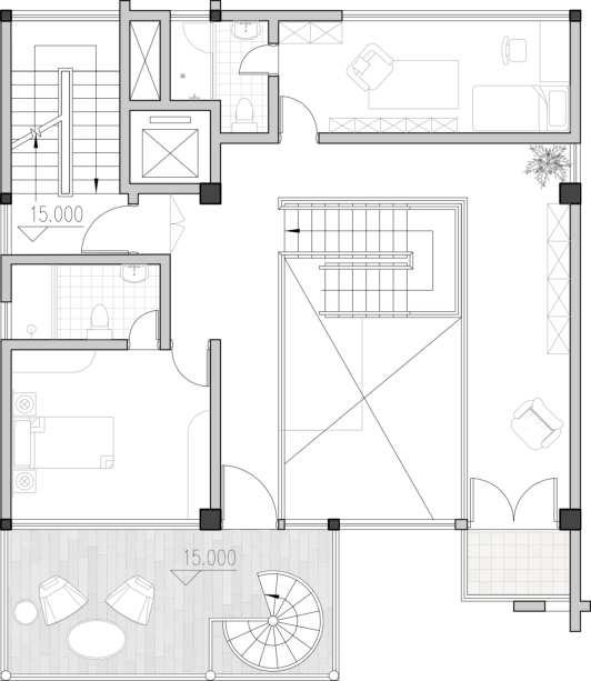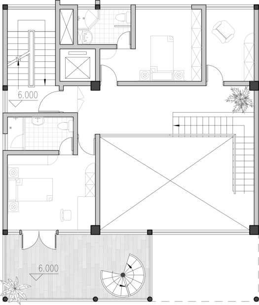 五层平面图六层平面图屋顶平面图 家庭3:弟弟、他的妻子和他们未来的孩子。