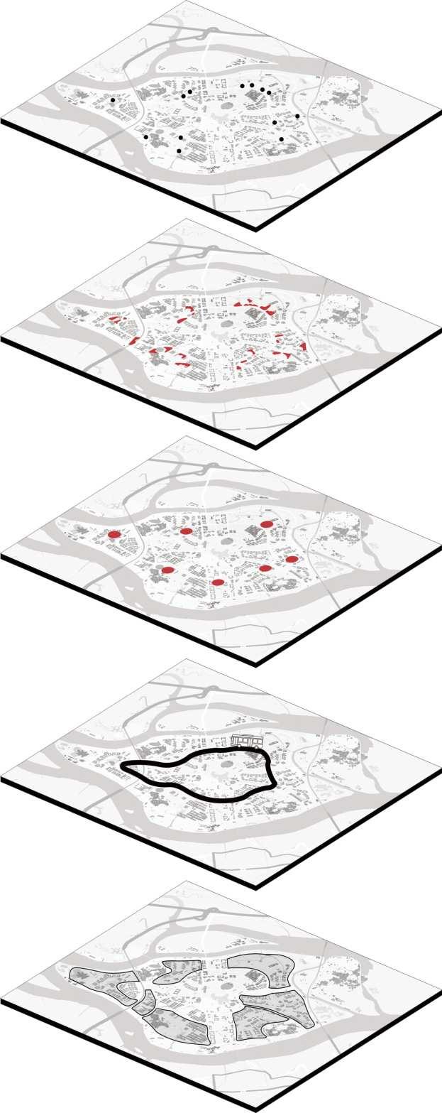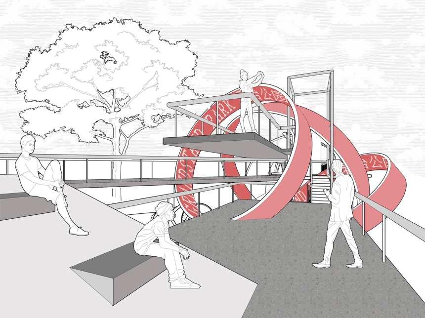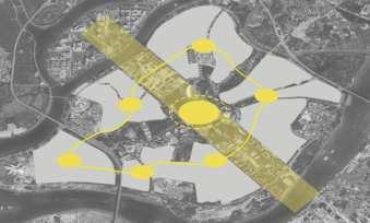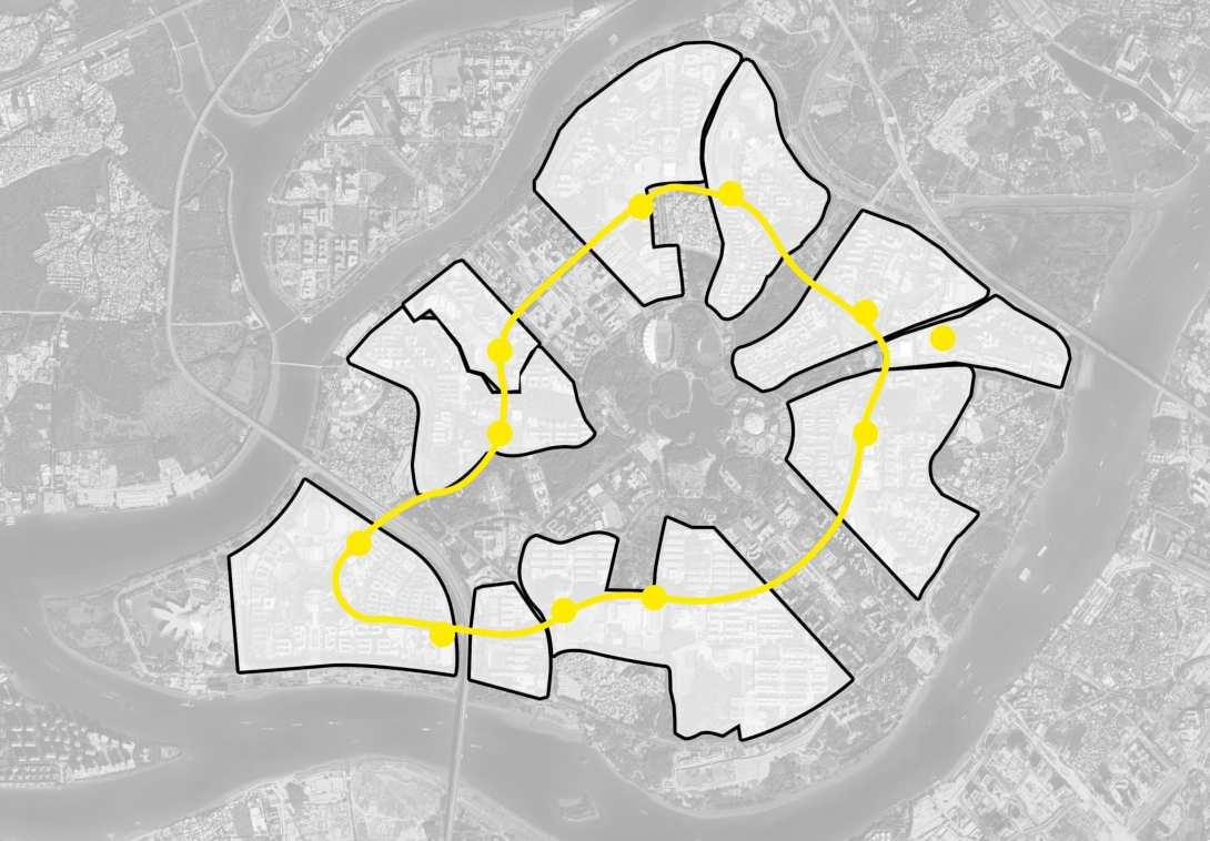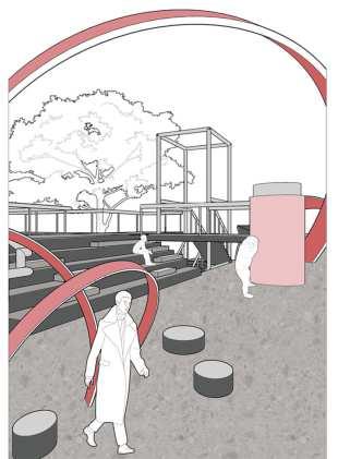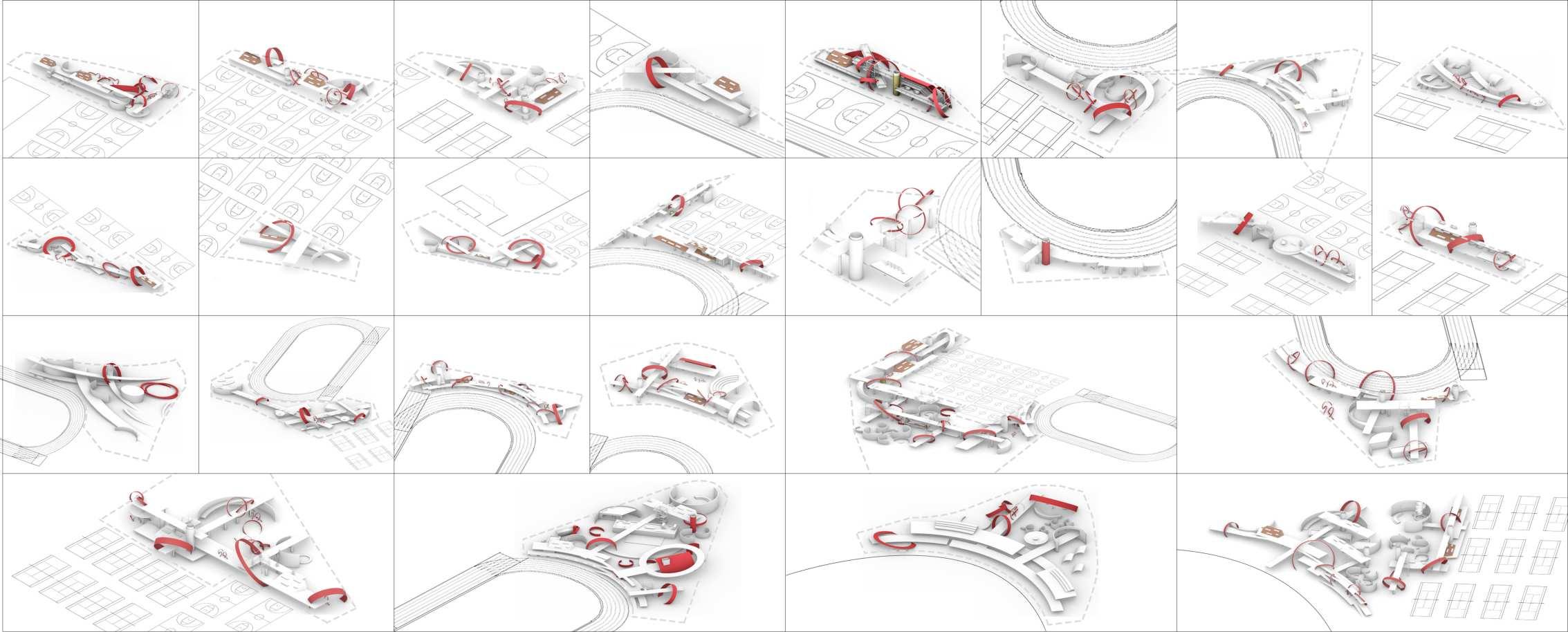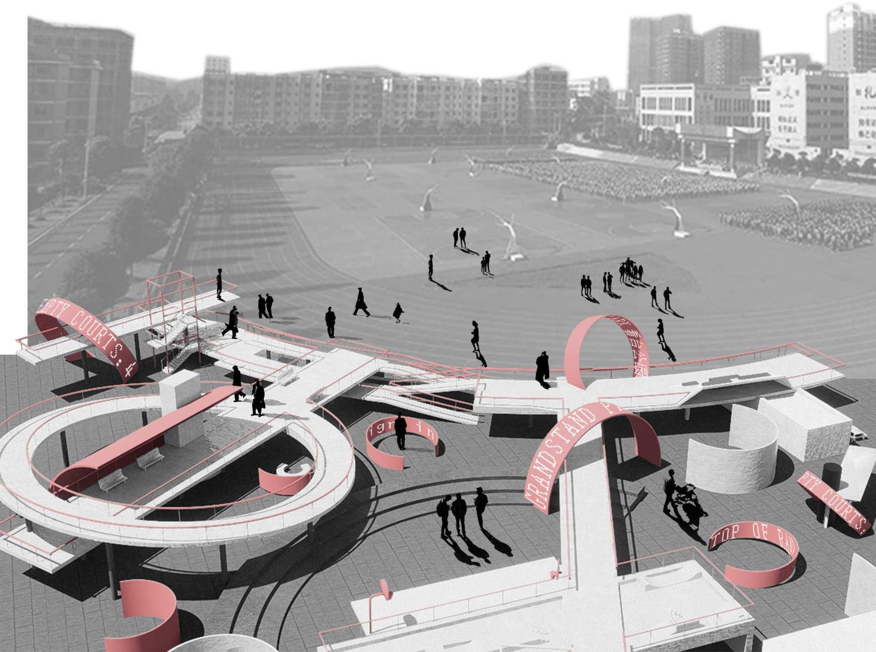 本项目希望借助连接大学城十所高校 的中环路,重新整合这个支离破碎的 社区。我们在这条路沿线的运动场旁 设置了26个看台公园,为大学生打造 一个全新的、互联互通的公共空间。