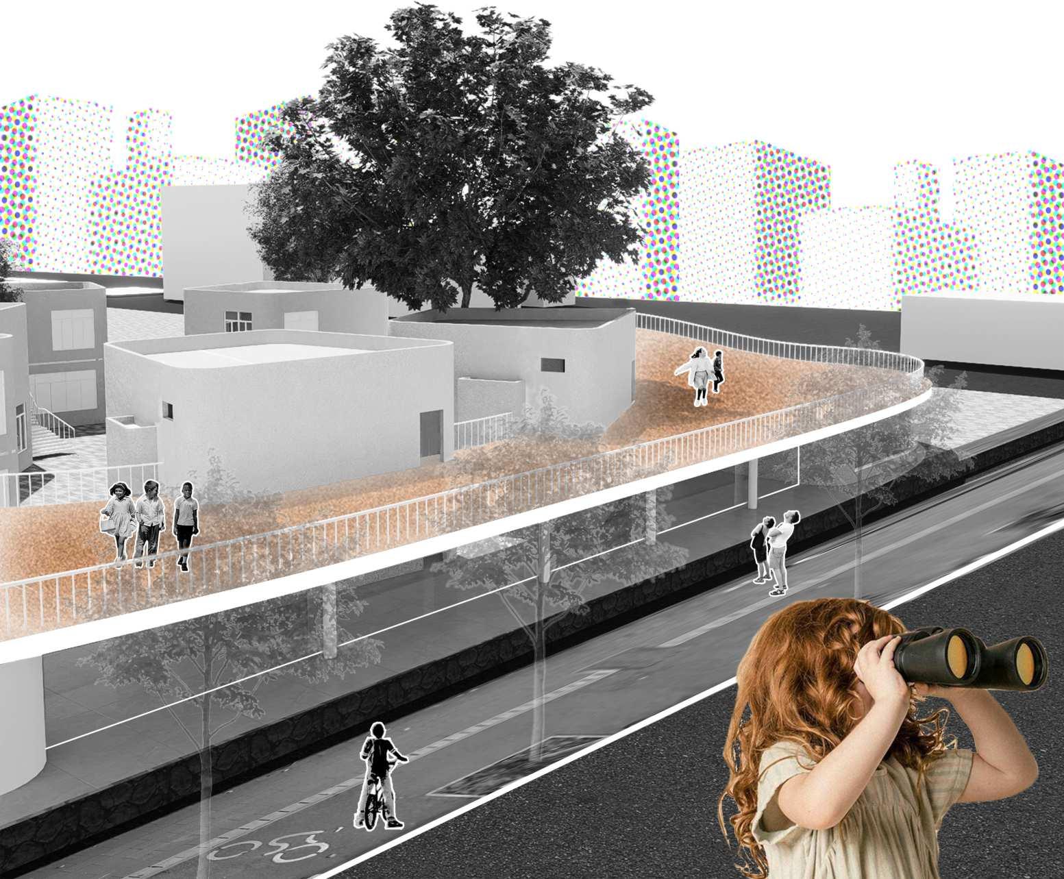 较高的平面:利用高度差创造新的边界,为 孩子们提供了一个看待社区的新视角。