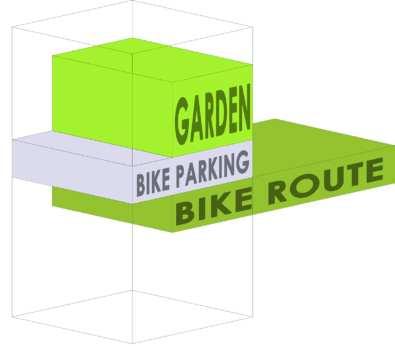 城堡:起伏的平台环绕场地,形成一个带有 内部庭院的城堡式结构。孩子们在高架平台 上可以欣赏社区风景,而地面上的孩子们则 被庭院所吸引。