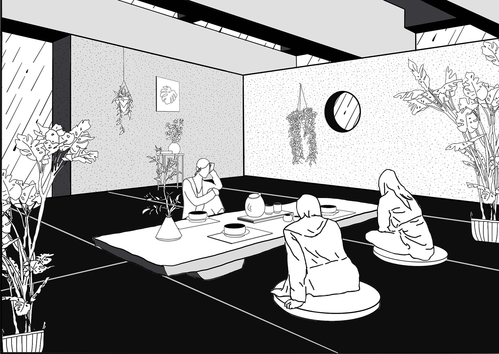 The increasing shortage of water resources has directly affected people, production, and the development of life. A radical climate shift into drastic wet and dry periods has effectively changed the way we now live. During the wet season, there is extreme rainfall. During the dry season, there is a scarcity of water. Rainwater became the primary resource making collection during the wet season critical for survival during the dry. As my non-human actor, Rainwater plays an important role in my subsequent design process, eventually forming a teahouse into a subterraneous bathhouse.