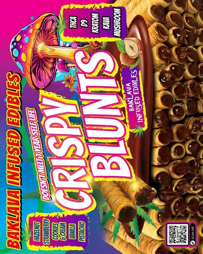 Baklava Sticks Crispy Blunts Edibles box of 10 packs of (2 sticks) $39.99 D9 hazelnut chocolate D9 strawberry D9 vanilla D9 cookies.
