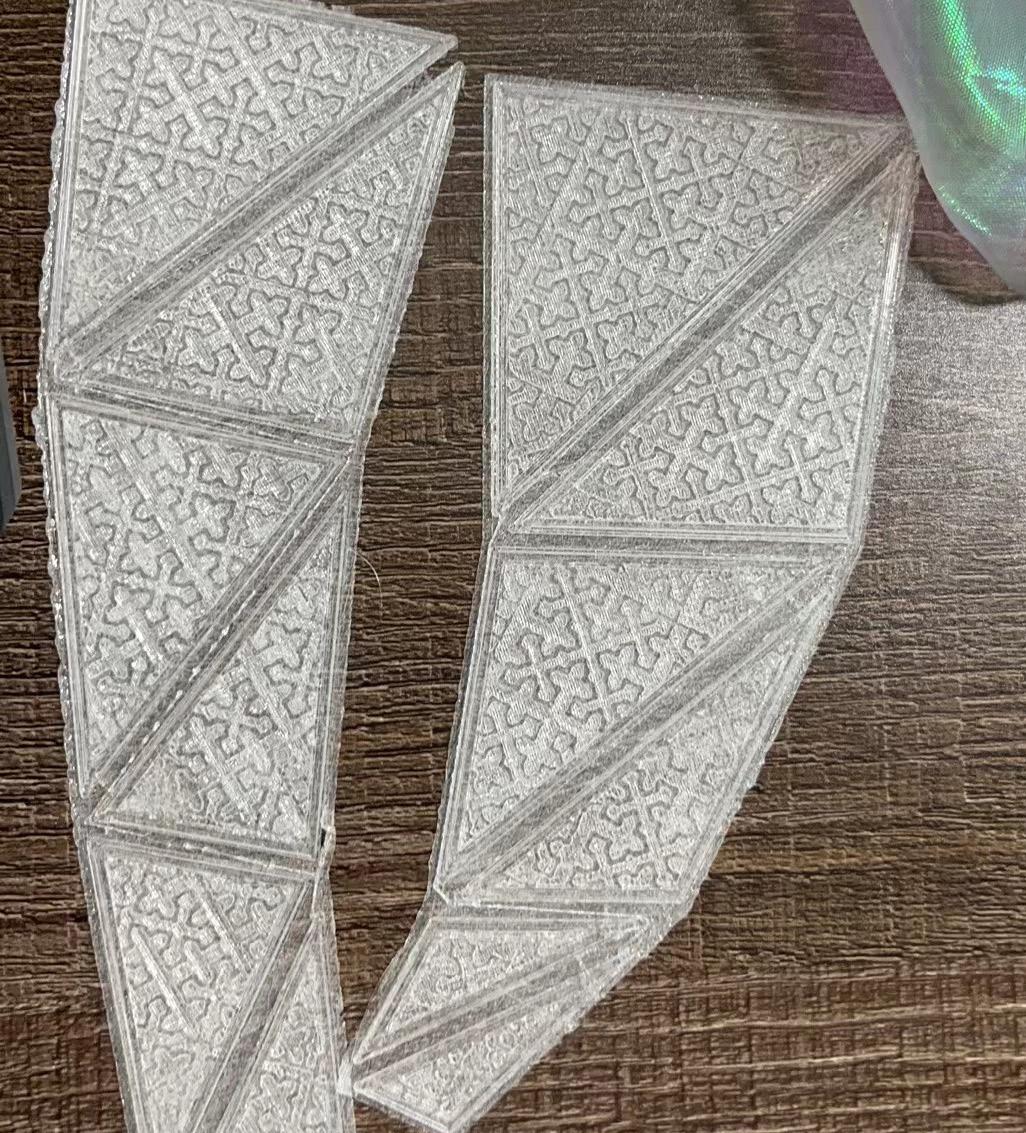 This project focuses on customized 3D printing techniques for garments, exploring how fabrics can effectively integrate with various materials to form complex self-forming mechanisms. It involves digital adjustment of the fabric's texture, performance, and appearance, innovating fashion design through customized processes.