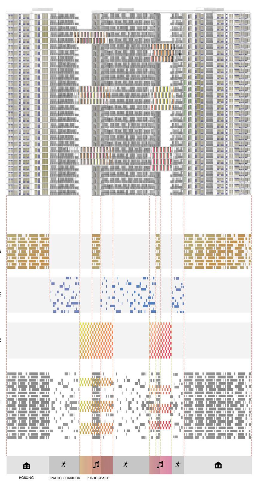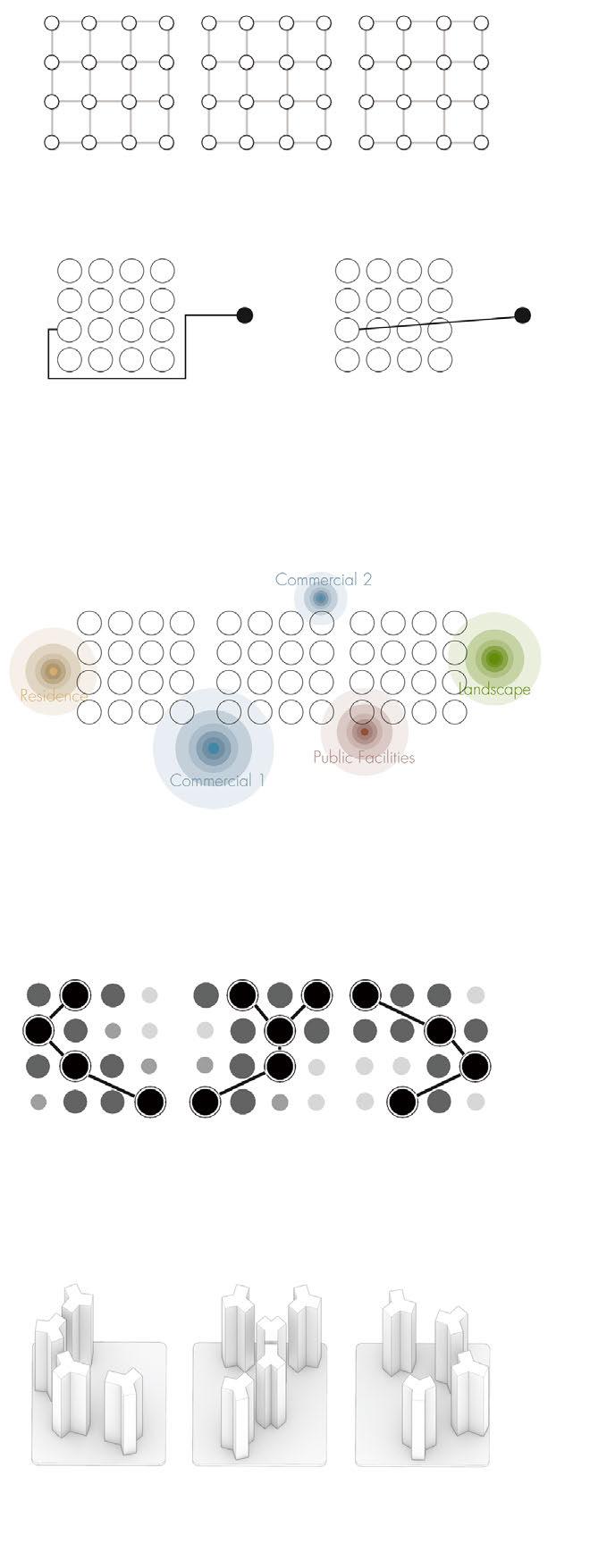 The points extracted in the previous steps can be used as the traffic core of the residence. Meanwhile, the house layout information uploaded by the purchasers and the optimized community composition become the basis for building volume generation.