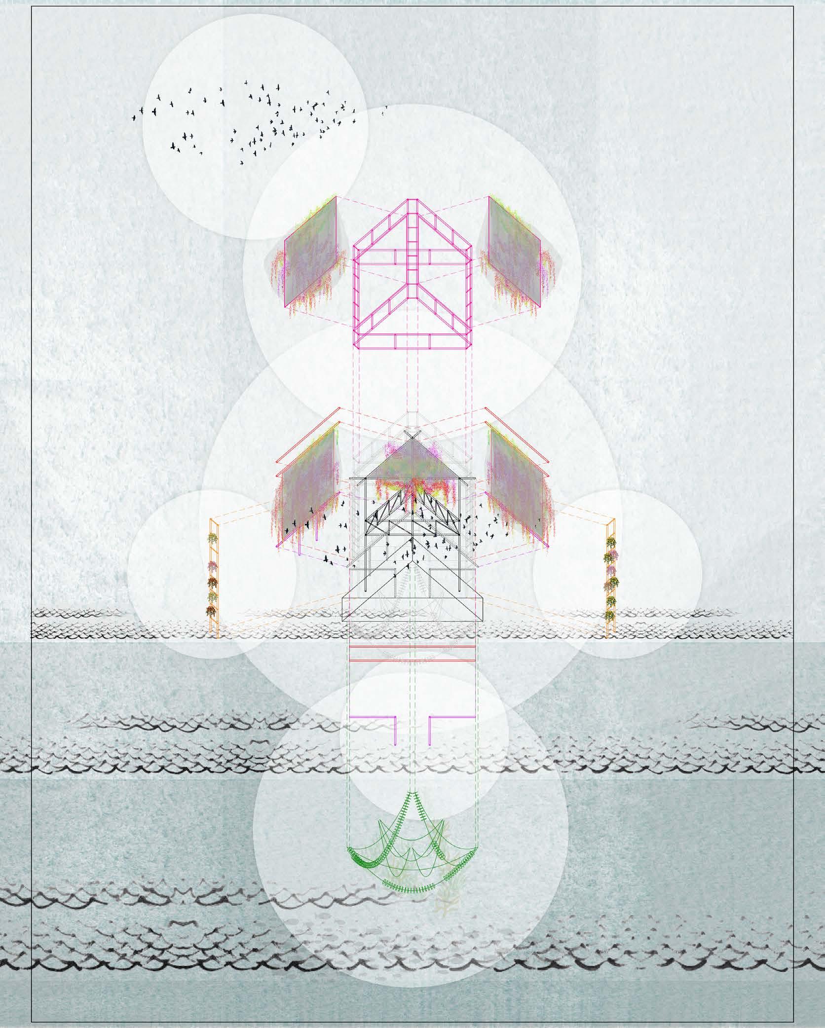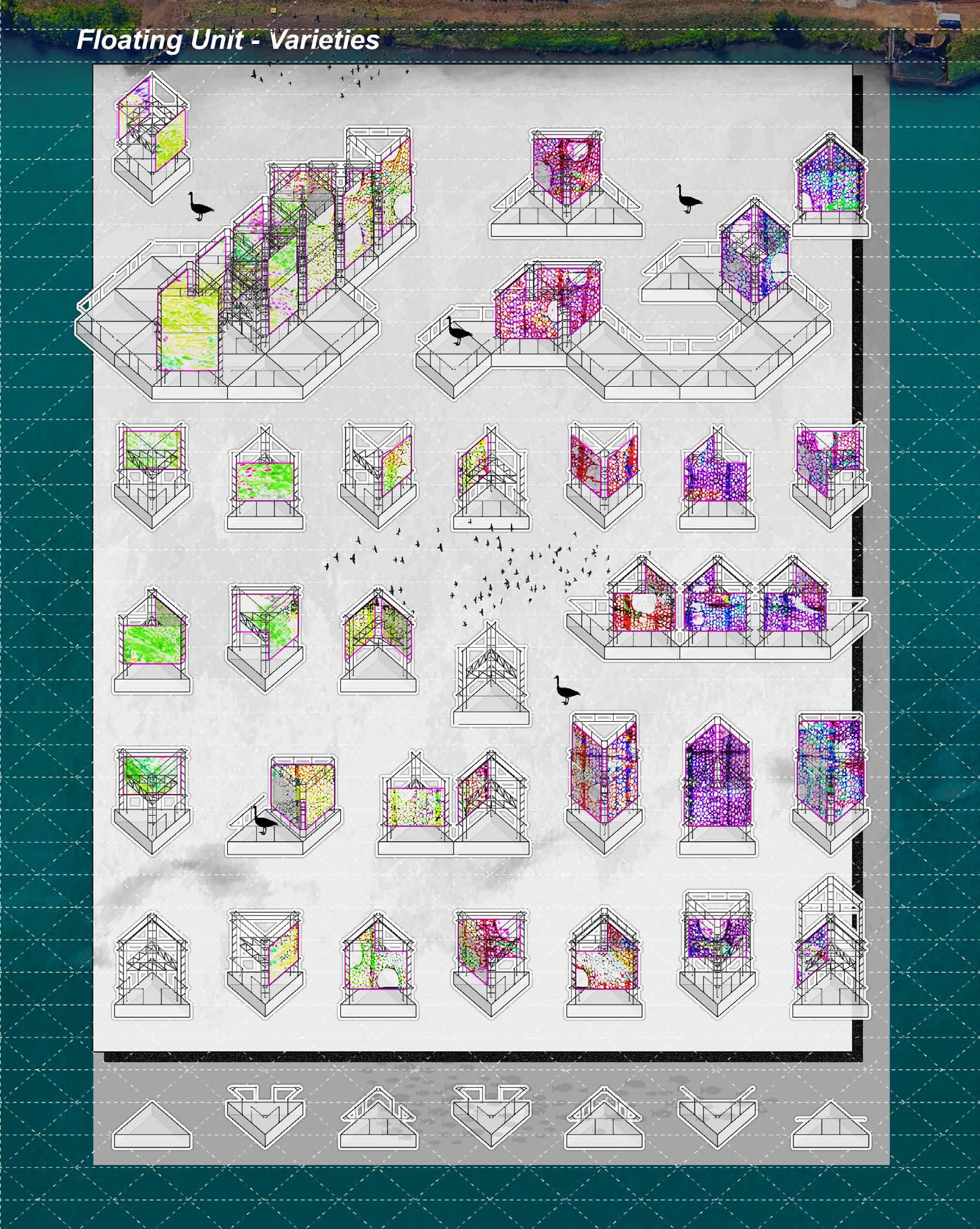 • The floating platforms can transform into working laboratories as well as seasonal urban staging post, where migrating birds pause to feed and roost before continuing journeys.