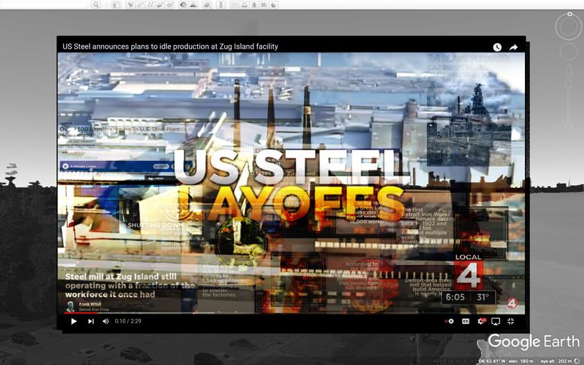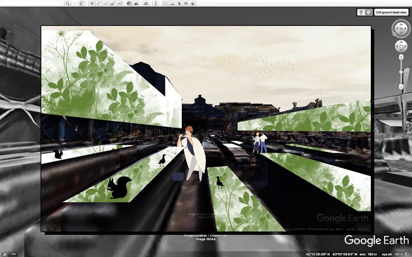 The project describes a 10-year scheme to turn a toxic productive field, which was originally a steel plant, into some recreational space and give access to water back to the surrounding communities along the Detroit River. The proposal attempts productive engagement of a number of issues including the low accessibility for the community to come to the river, the disorder in existing structure and enclosure after decades of intense operation, and the air/ water/soil contamination on existing sites.