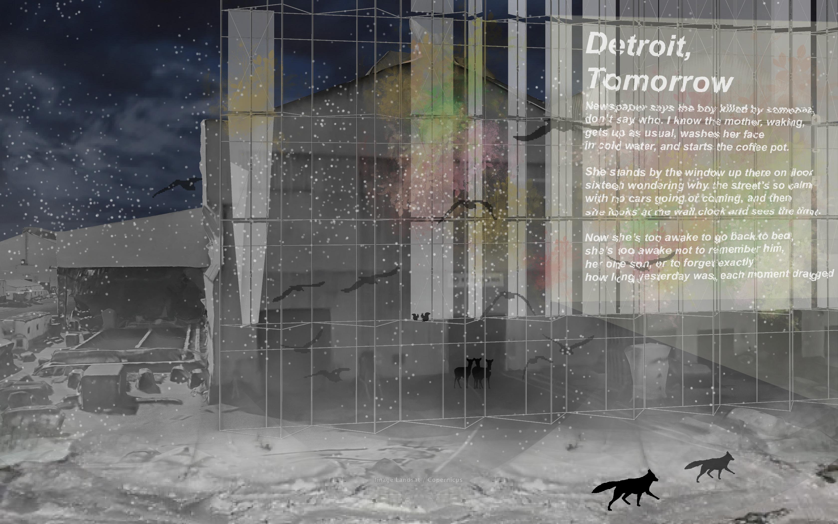 Library MORE THAN HONEY Re-Assembling the Fragmented Intelligence # Specular Urban Design SECOND SUCCESSION Rewilding the US Steel Plant in Ecorse, Detroit # Shadow Catching HOUSE OF MULTI-DIMENSIONs Stalkering the Globe’s Daylighting OTHER ARTIFACTs # Fabrication Thank you, Machines # Representation Moodboard, Composition and Rendering Techniques # Others Have fun # Collective Housing ASH ASSEMBLY Imagining an Affordable Qualitied Life # Office Building Enclosure System FACADE ACROBAT Seeking Carbon-Neutral at the Heart of Detroit