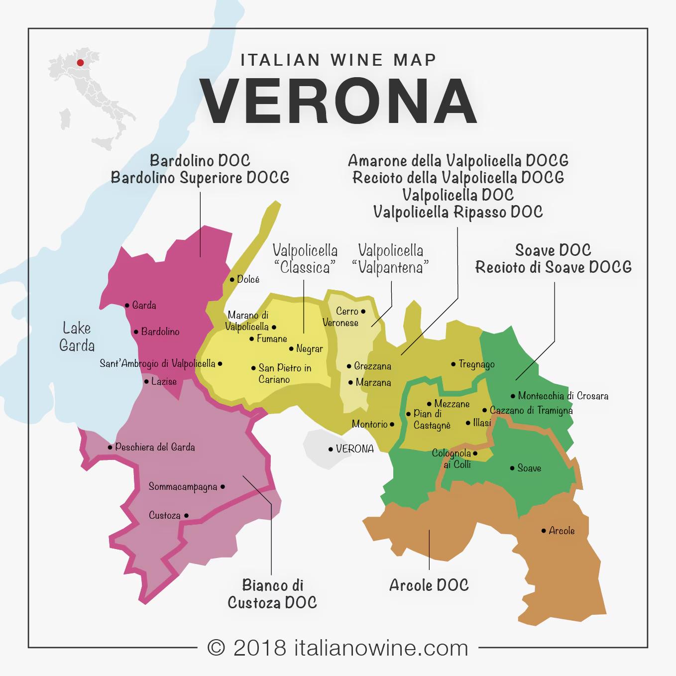 Entre os tintos, a região do Valpolicella desponta com as uvas Corvina, Rondinella e Molinara resultando em diversos vinhos, dentre os quais: