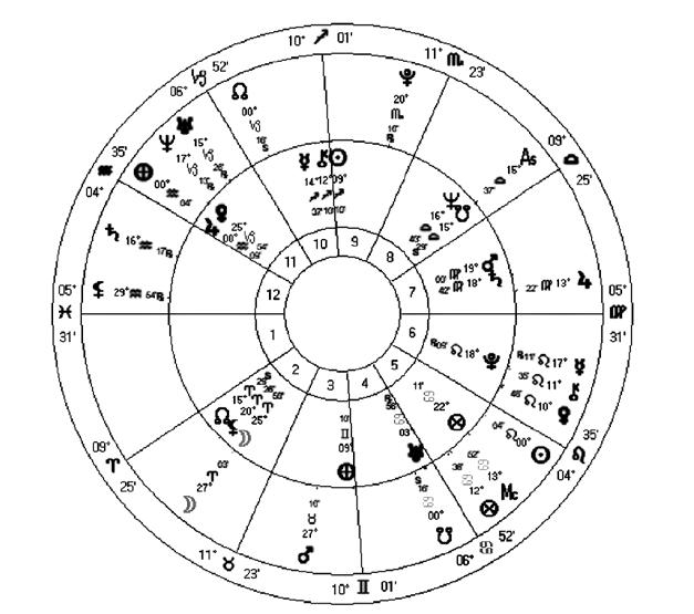 Urodził się też jednak z najpiękniejszą ze wszystkich koniunkcji – Wenus-miłość i dobroczynny Jowisz w jedenastym domu, reprezentującym altruizm i pomoc bliźniemu. A zarazem przypadła mu w udziale koniunkcja najgorsza ze wszystkich – Mars-wojna obok Saturna-śmierci w siódmym domu, odnoszącym się do społeczeństwa i znanych rywali.