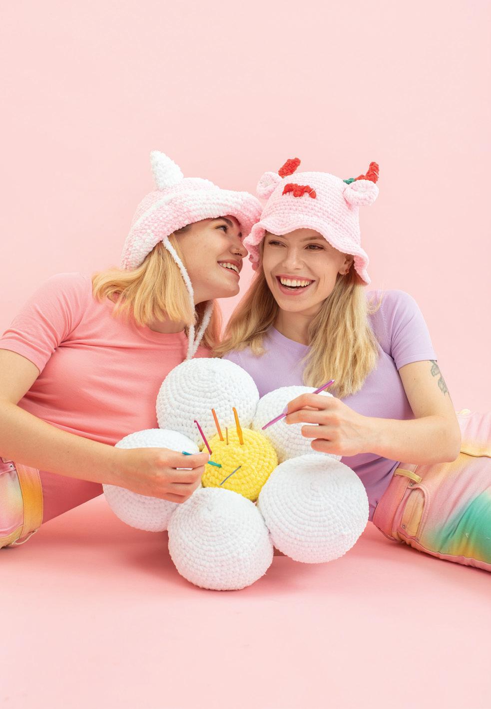 Podczas pierwszej kwarantanny wspominałyśmy swoje dzieciństwo – a głównie to, jakie miałyśmy wtedy zainteresowania i jak spędzałyśmy wolny czas. Jednym z naszych ulubionych zajęć było tworzenie bransoletek i breloczków z małych gumeczek loom bands. Całkiem nieźle nam to szło –plotłyśmy skomplikowane wzory, a nawet podobi zny zwierzaków. Stwierdziłyśmy, że szydełkowanie może być do tego podobne, dlatego postanowiły śmy spróbować swoich sił w dziewiarstwie.