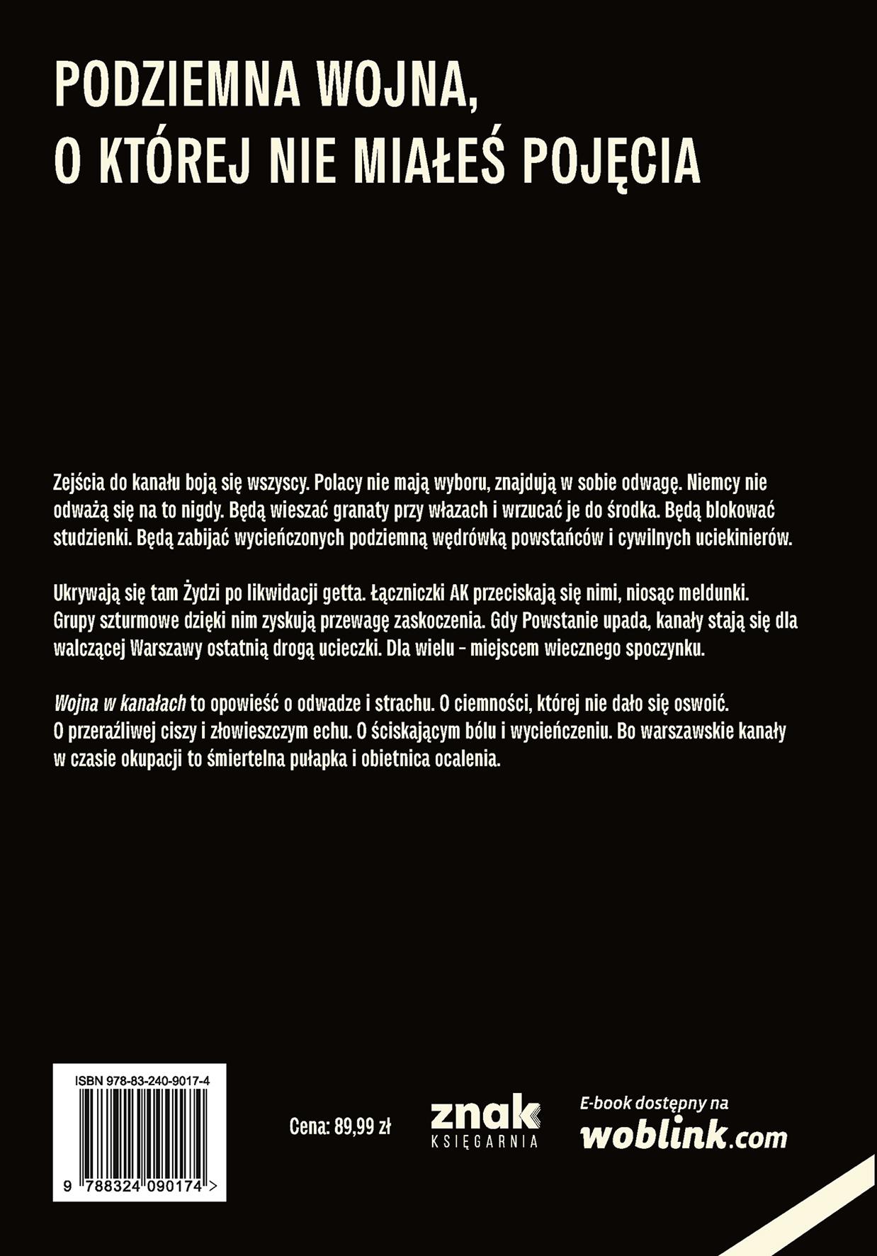 Wiedział jednak, że musi wrócić do wąskiego tunelu. Znowu zewsząd otoczyły go cegły. Nie widział ich, ale czuł. Ich wilgoć i ciężar. Przesuwali się dalej. Coraz wolniej, pchani raczej poczuciem wstydu przed dziewczyną niż czymkolwiek innym. A na pewno nie własną siłą. Tej już nie mieli. Opuściła ich kilkadziesiąt skoków temu. Bezustannie gonili swoją przewodniczkę, która co jakiś czas zatrzymywała się, żeby na nich poczekać. Sama już dawno temu przeszłaby tę trasę. Nie raz to w końcu robiła. Zamiast tego musiała pilnować czterech wielkich chłopów, którzy jeszcze niedawno chwalili się, że trzy razy przechodzili na Żoliborz i z powrotem. Ale tam jest inny kanał. Większy, wyższy. Można iść normalnie. Dwa razy tylko trzeba uważać. Raz przy włazie, którego pilnują Niemcy, a drugi raz przy przecinającym kanał główny przelewie burzowym, gdzie woda z hukiem pędzi w stronę Wisły, porywając słabszych i nieuważnych. Reszta trasy jest względnie prosta. Jak na warunki panujące na dole oczywiście. Co innego tutaj. Ciasno, nisko i Niemcy nad głową. No ale nic, trzeba czekać. To już nawet nie chodzi o rozkaz przeprowadzenia oficerów do Śródmieścia, ale o odpowiedzialność za nich. Tutaj na dole to ona decydowała, to ona odpowiadała za bezpieczeństwo. Jak pilot w samolocie za pasażerów. Oni byli jej pasażerami.
