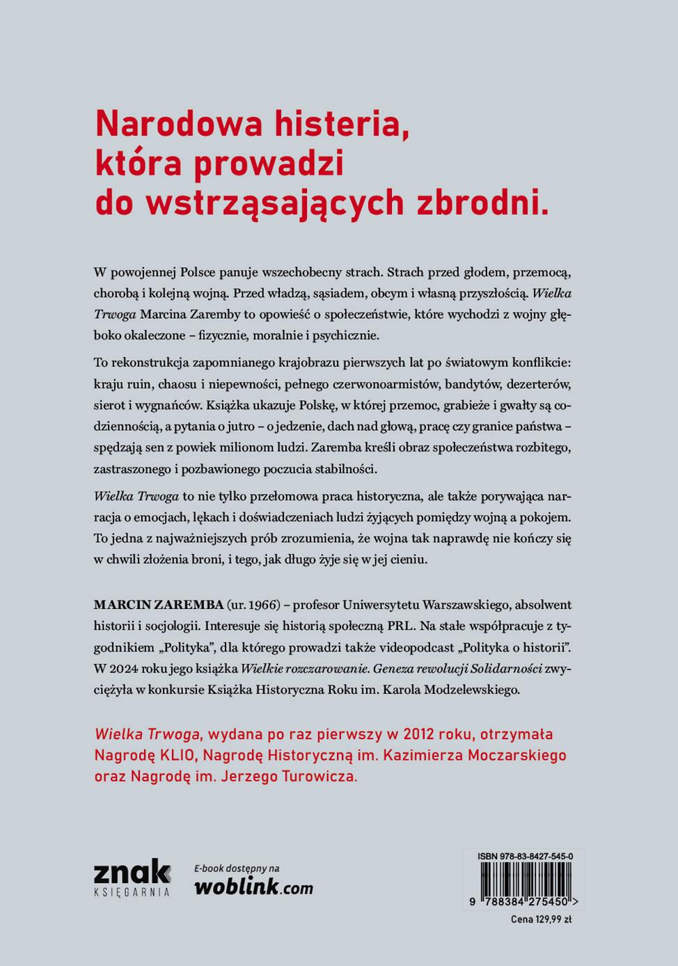 ■ Pierwsze wydanie Wielkiej Trwogi ukazało się w 2012 roku. Wywołało falę zainteresowania okresem powojennym, czego przejawem było kilkadziesiąt recenzji w mediach. Książka wzbudziła również ciekawość poza granicami kraju: została przetłumaczona na języki angielski, niemiecki i ukraiński.