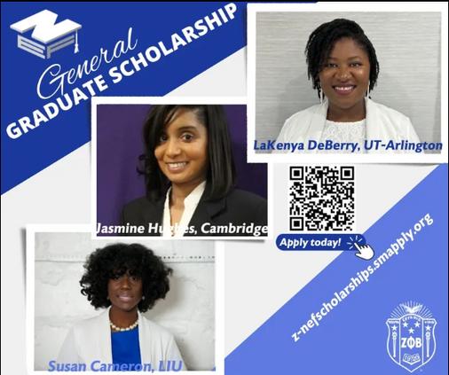 This scholarship is available to eligible members of Zeta Phi Beta Sorority, Inc. who are financial on all levels (National, Regional, State and Local) for the current year of the award and actively pursuing a graduate or professional degree in an accredited college or university program.