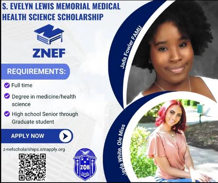 The S. Evelyn Lewis Scholarship is available to graduate or undergraduate young women in a program leading to a medicine or health sciences degree. This scholarship is also available to high school seniors who will matriculate full-time into an accredited undergraduate medicine or health science degree-granting program in the fall of the award year.