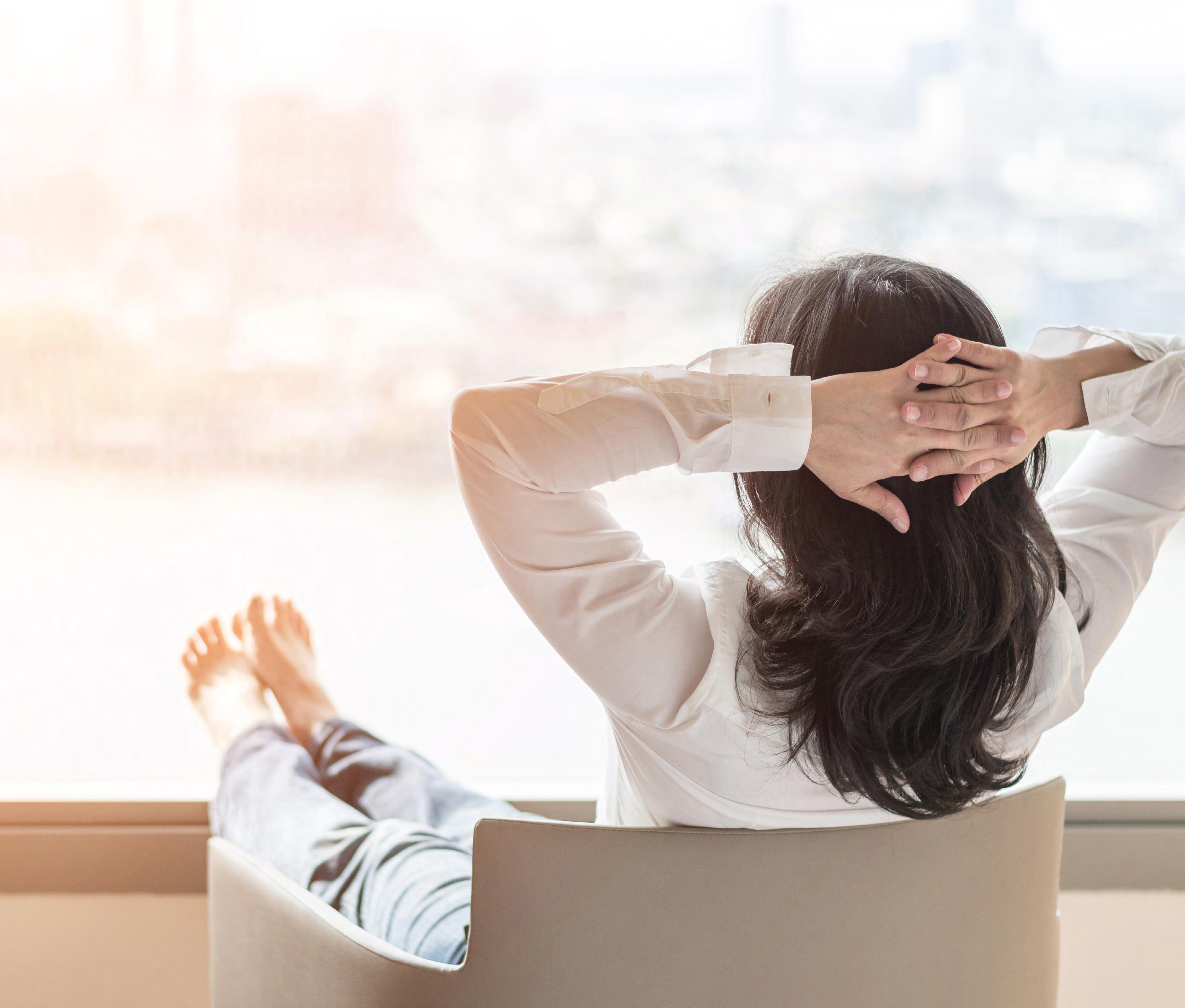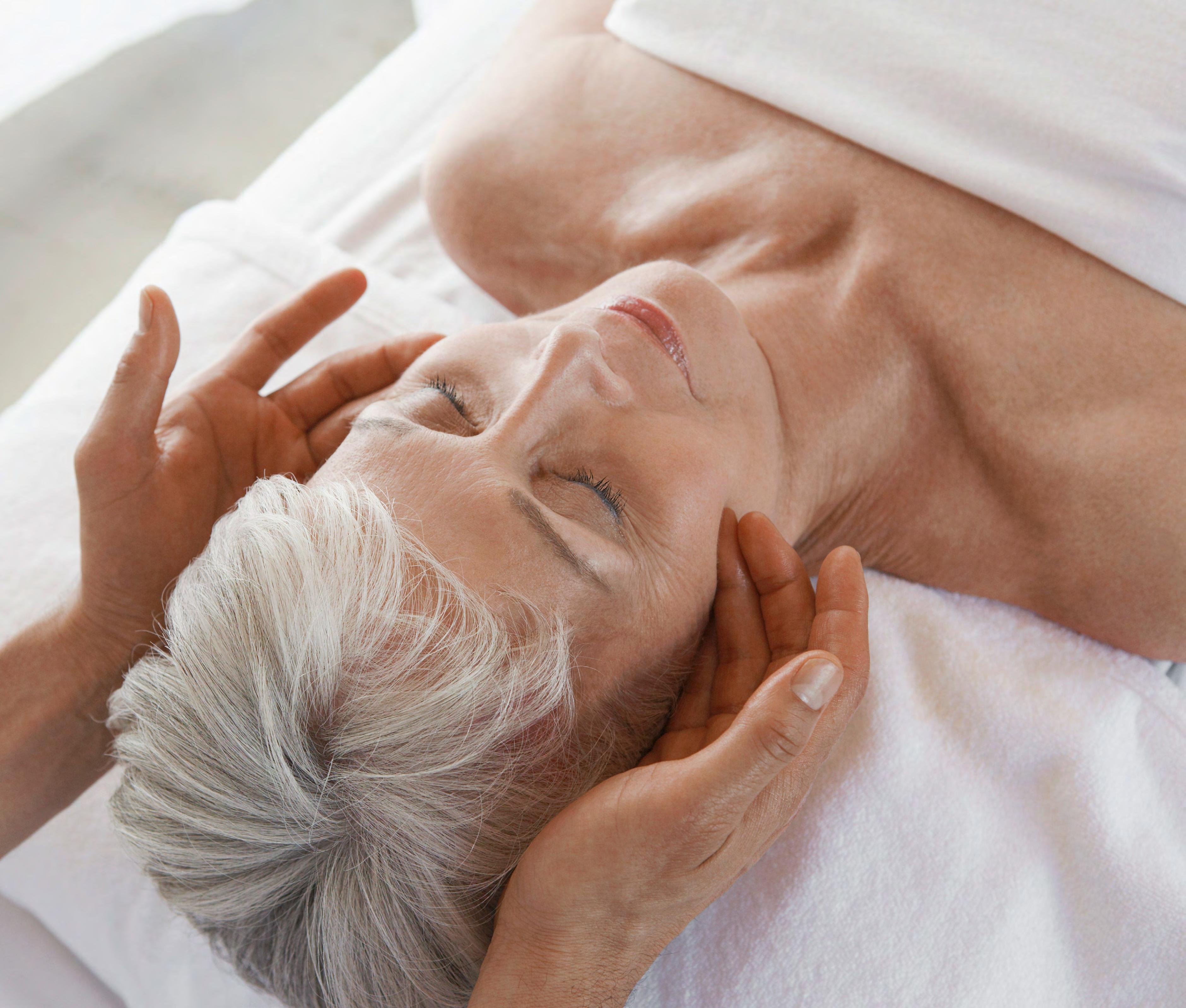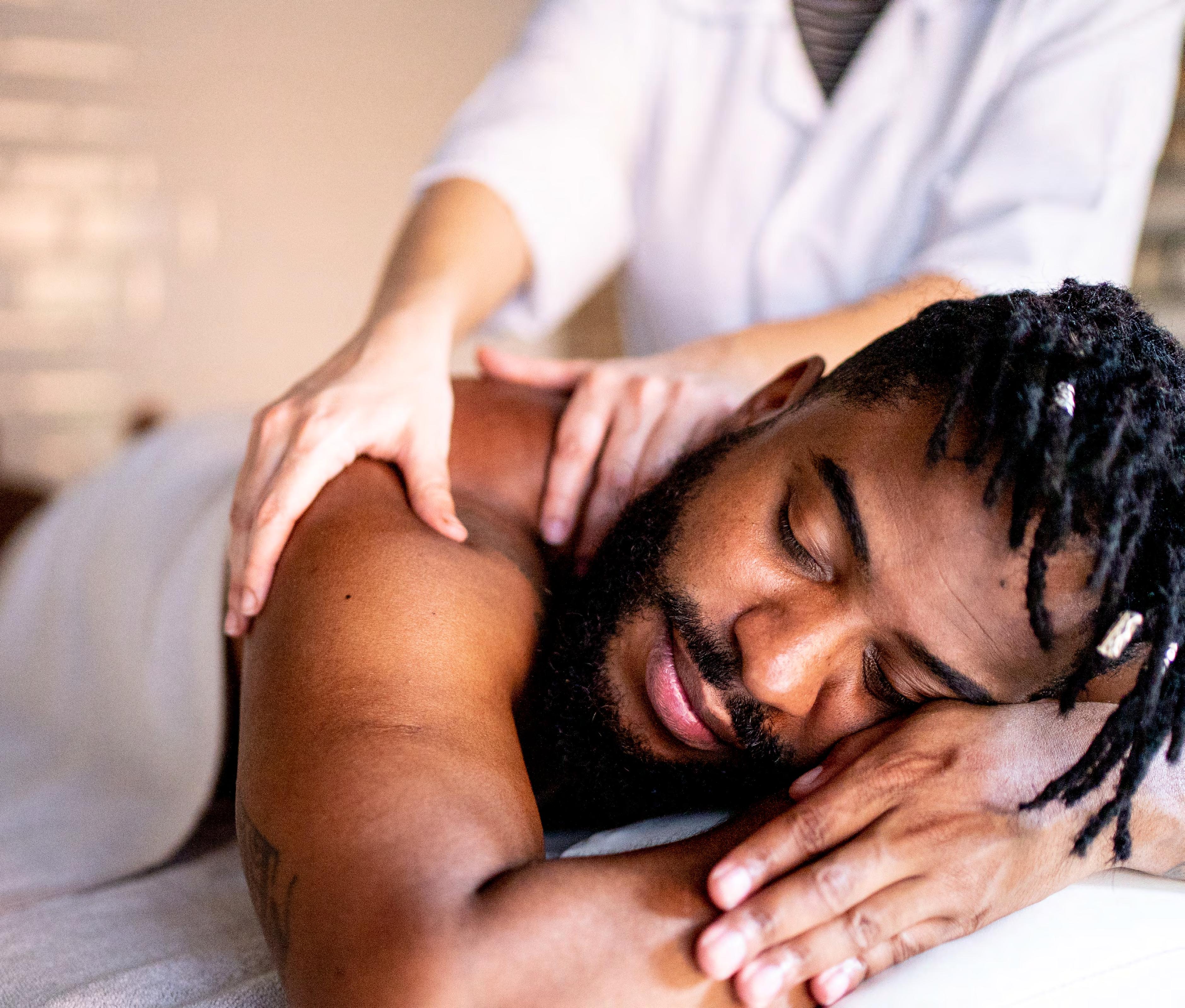 Photos should show relaxing application of any practice in warm light and softened body tones.