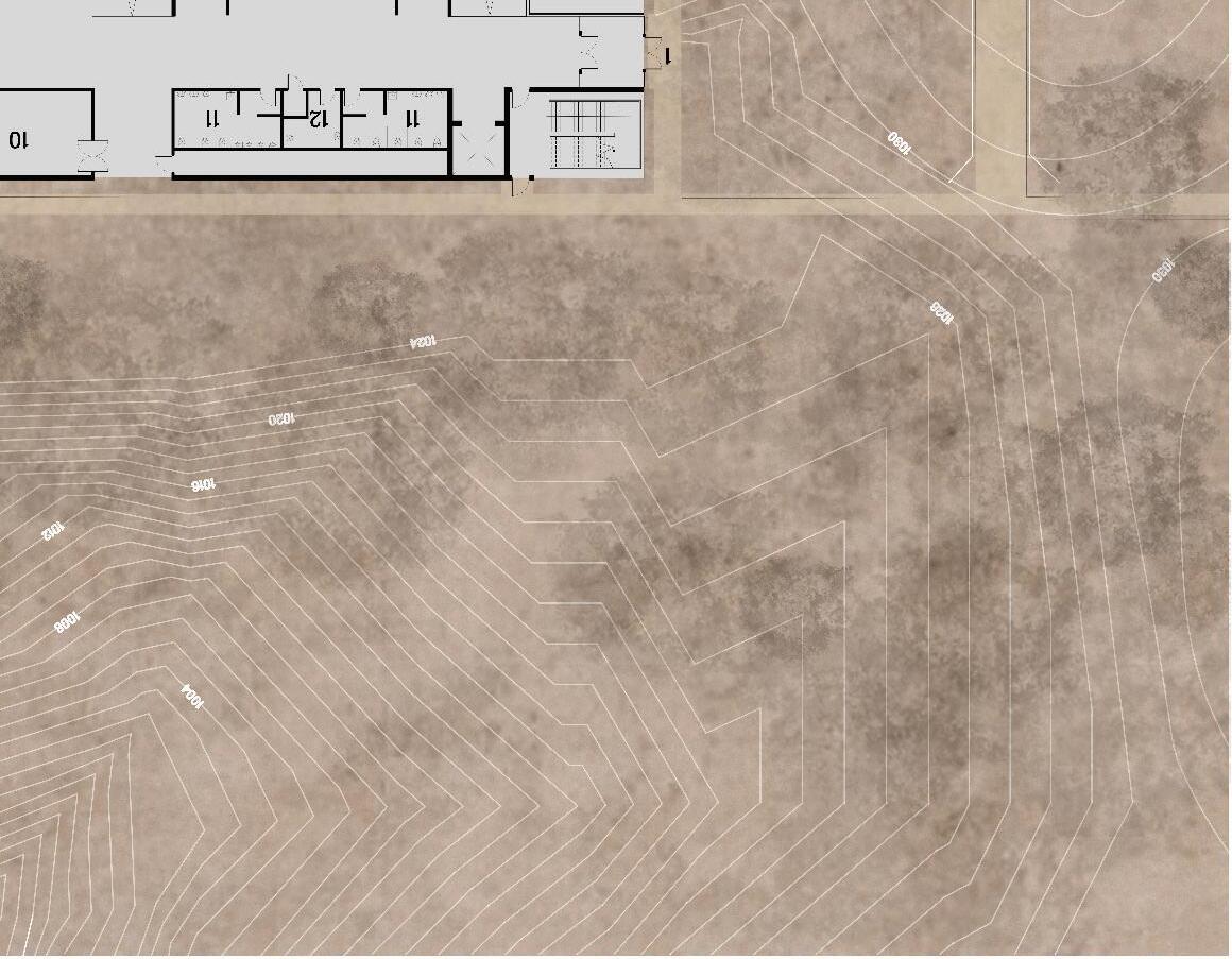 The site is on the corner of Lincoln Way and North Dakota Avenue. As you move east to west through the site, you move from living to decaying because of excess moisture on the site. The surrounding infrastructure redirecting the water towards the site, in addition to the soils with poor filtration located on the west side, suffocate the soil. The rain flowing through the site will be passed through bioswales located on the sides of the building.