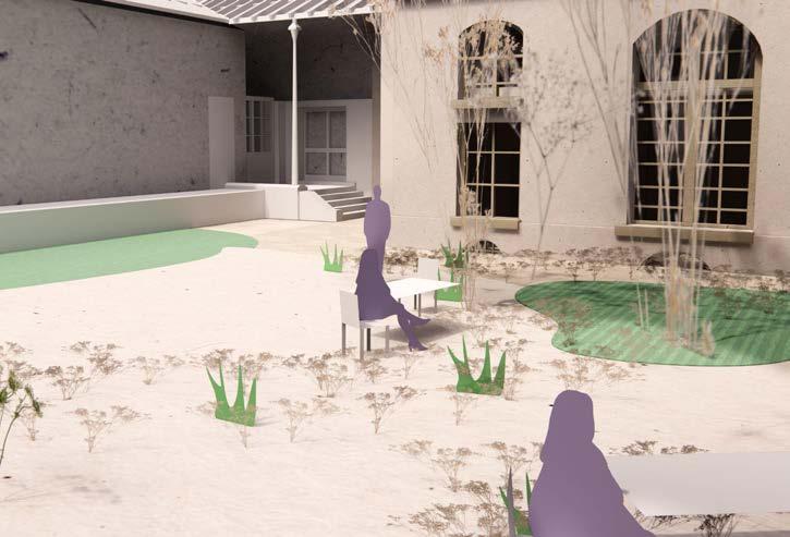 Maquette numérique - Perspective projetée des modules autour de l’aqueduc dans le parc