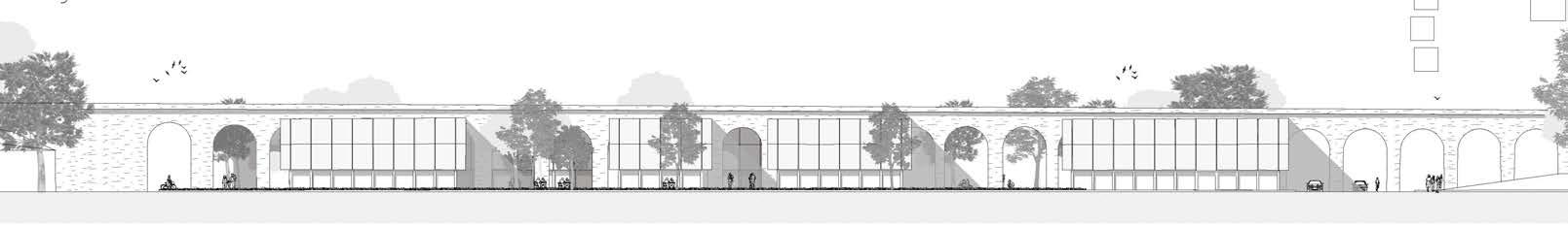 Façade - Modules longeant l’aqueduc, proposant des circulations extérieures