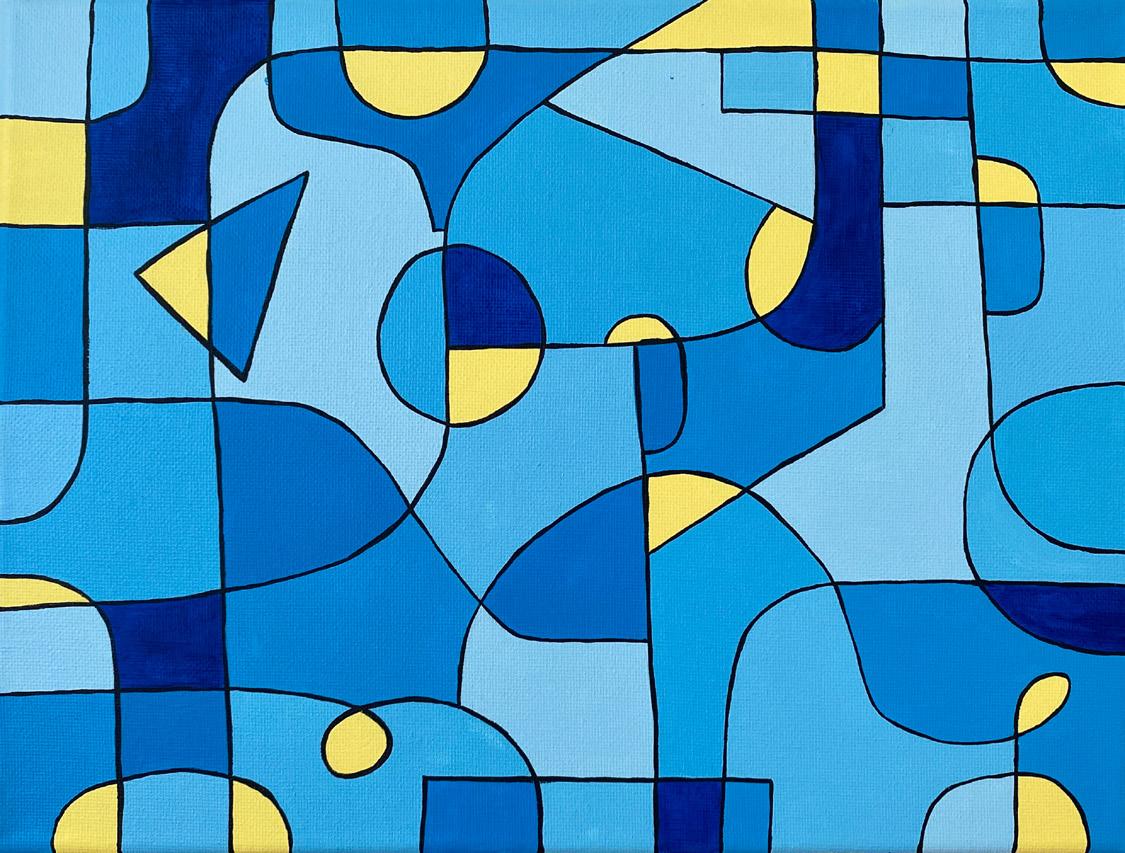 What began as pen drawings in a sketchbook, quickly turned into painting experimentation. I have thoroughly enjoyed taking my love of patterns into my paintings. I mostly create with acrylic paint because I love the vibracy and consistency of the colors. Painting is also very enjoyable for me to experiment with since I can always add more paint. There never feels like there is a true mistake in any painting, especially the more abstract pieces that I have created.