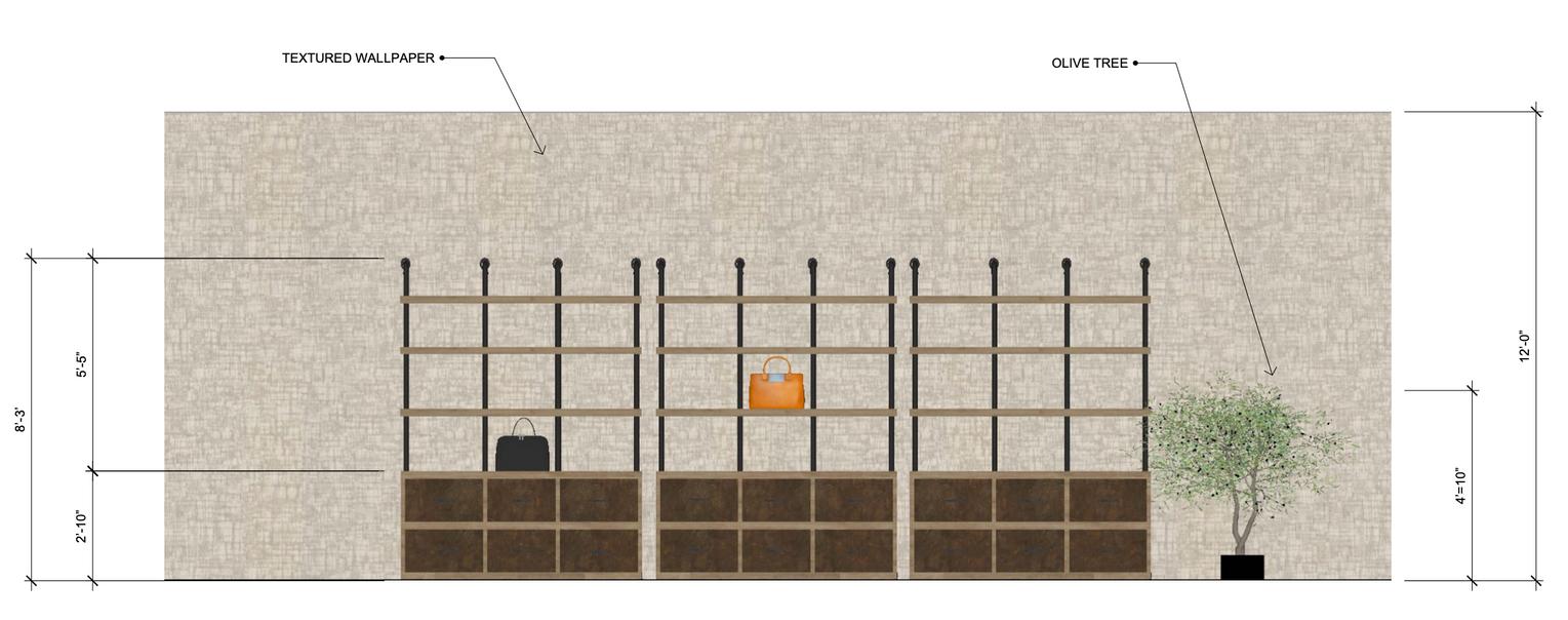 This restaurant design allows for two main areas, the bar area and the family-friendly dining area. There is a total of 263 seats between the family-friendly dining area and the bar area. It also has a wine retail area at the reception, because Scarpetta supports local small businesses by serving local Texas wines at their location. The private family dining rooms can accommodate 10+ people, and the rooms are separated from each other with partitions to reduce noise pollution from large families or groups. Multiple seating options like booths, dining chairs, and lounge chairs allow customers to select their desired experience. Scarpetta uses circular and curved tables throughout the restaurant, which is a fun nod to an Italian superstition that single people shouldn't sit at the corner of the table, or they will be single forever.