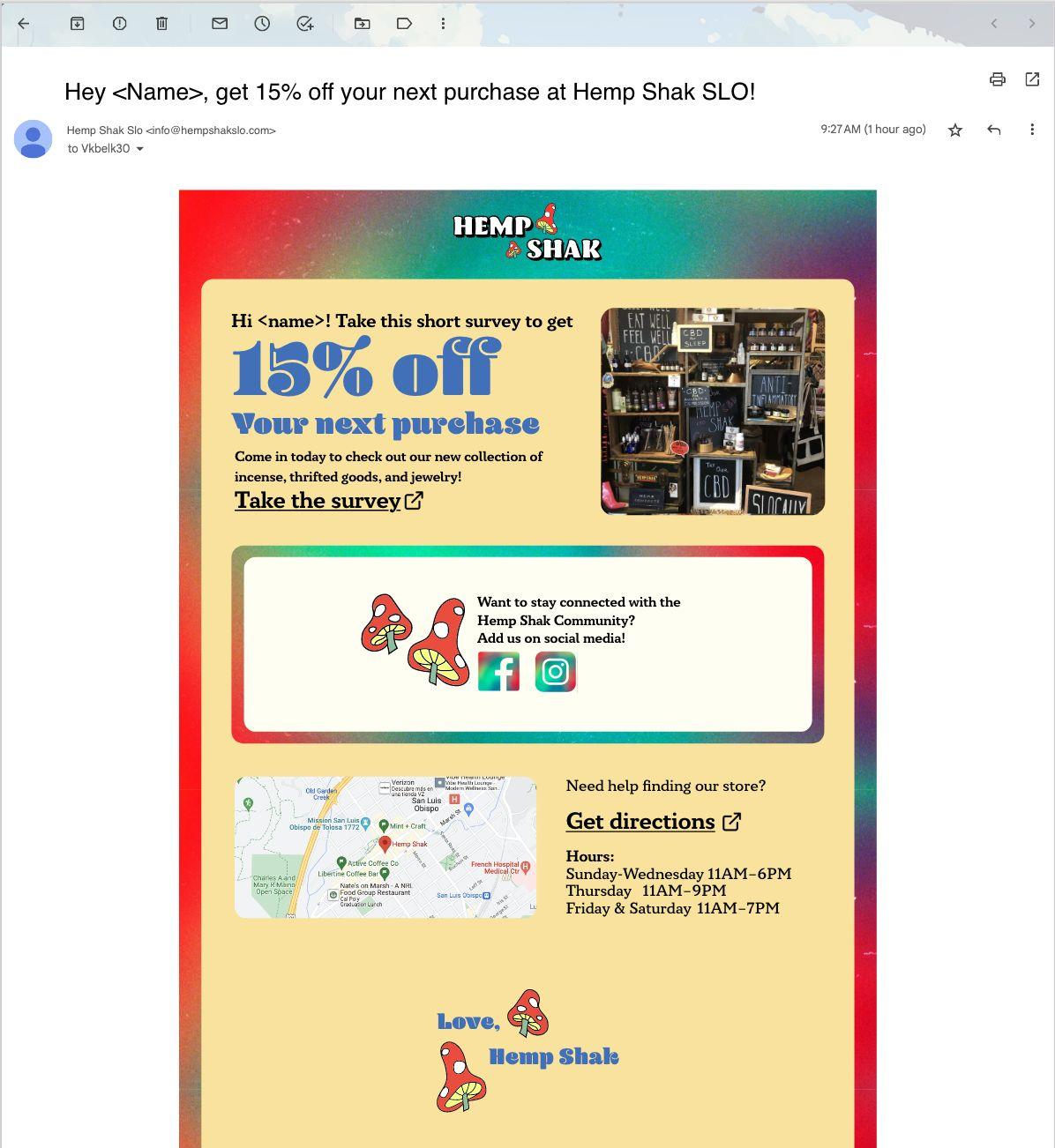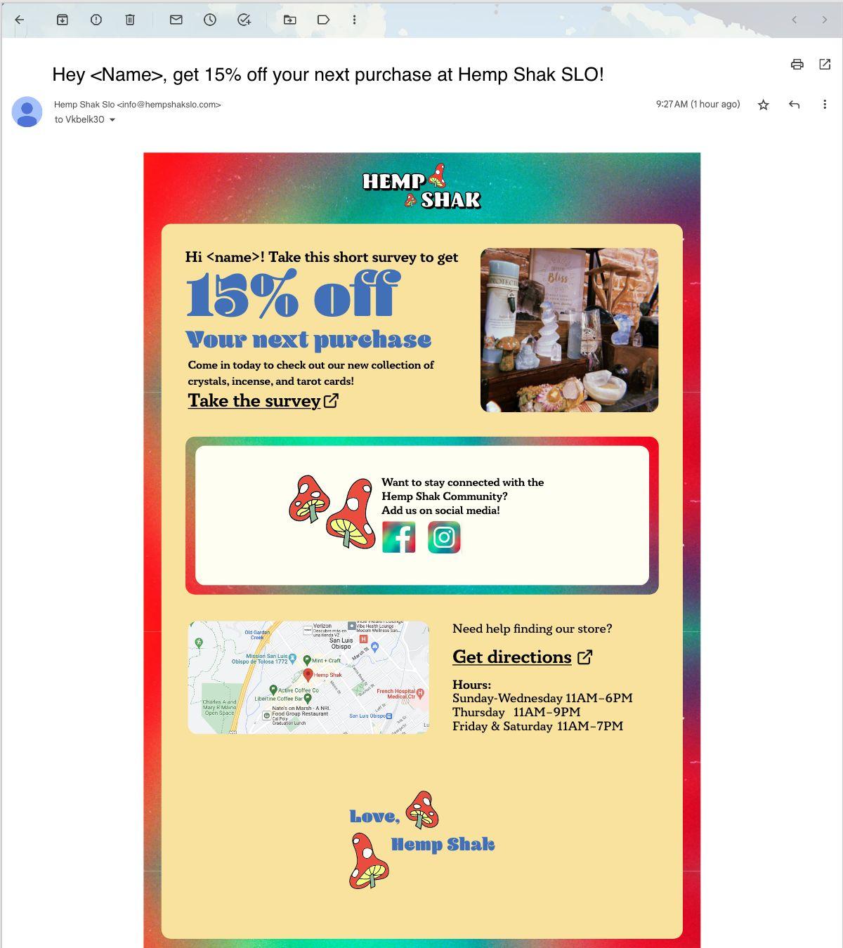 EmailCollection:QRcodeonpostcards/handoutsleadstoalandingpagewitha pop-upencouragingviewerstosignupforemailstoreceiveacoupon