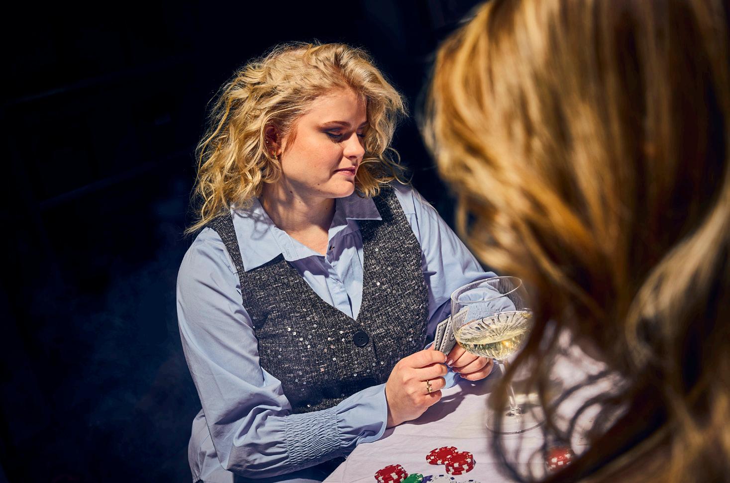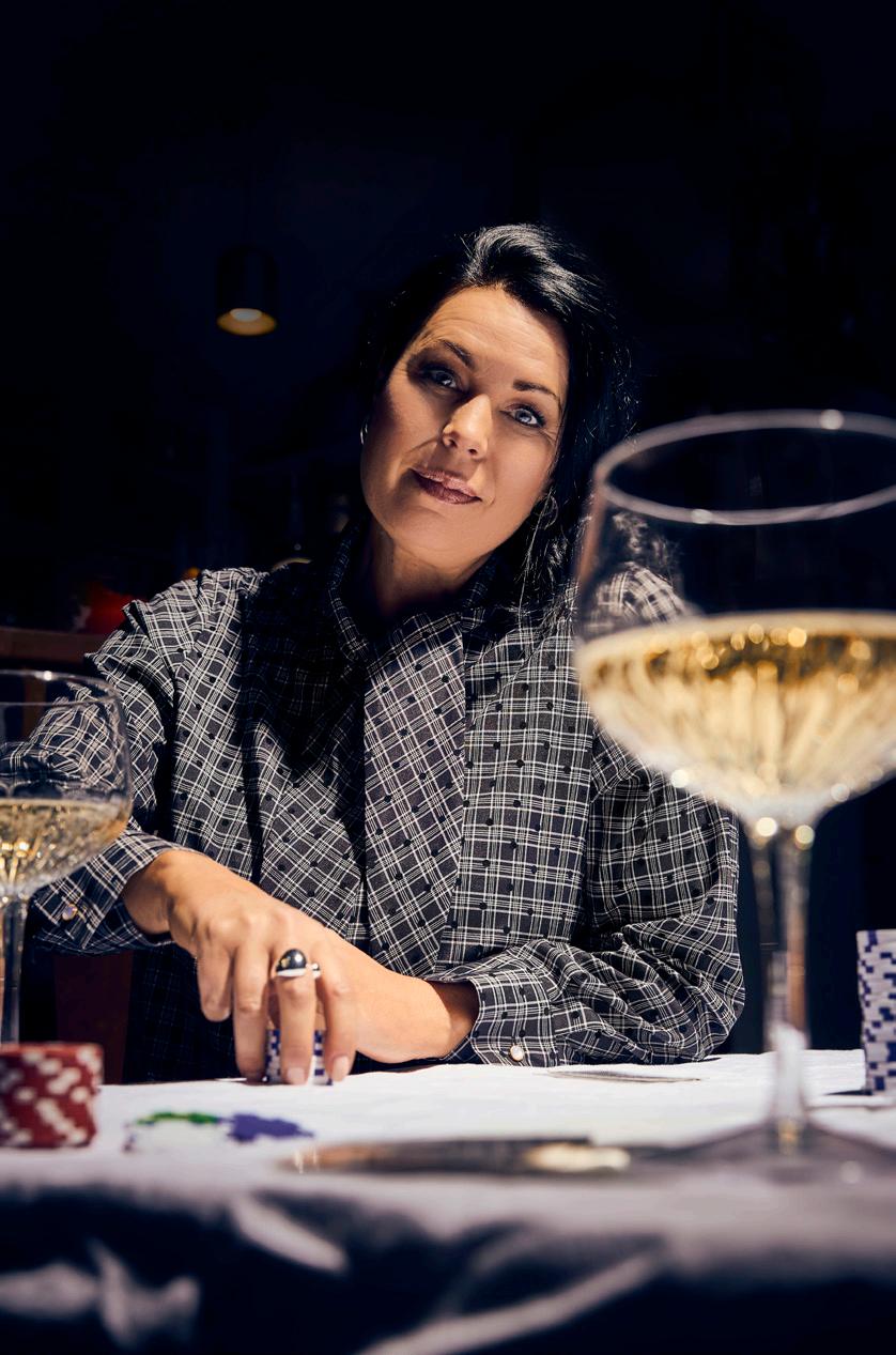 Soft, directional lighting casts deep shadows across the table. A private late-night gathering where confidence and attitude matter as much as the game being played.