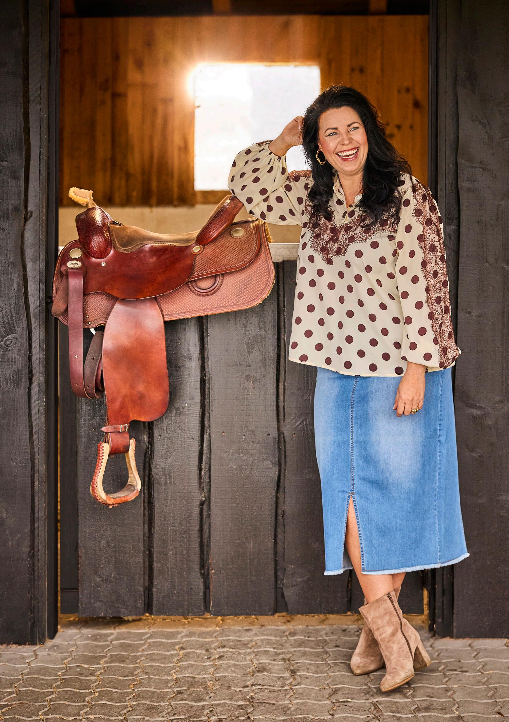 A soft Western elegance with a touch of relaxed countryside confidence.