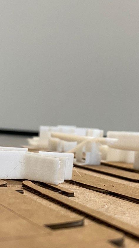 The model here depicts how sparks stand out of the existing with unique materiality, colour and texture in contrast to the present conditions; creating an overall mixed dynamic canvas in the scenario, superimposed on the existing.