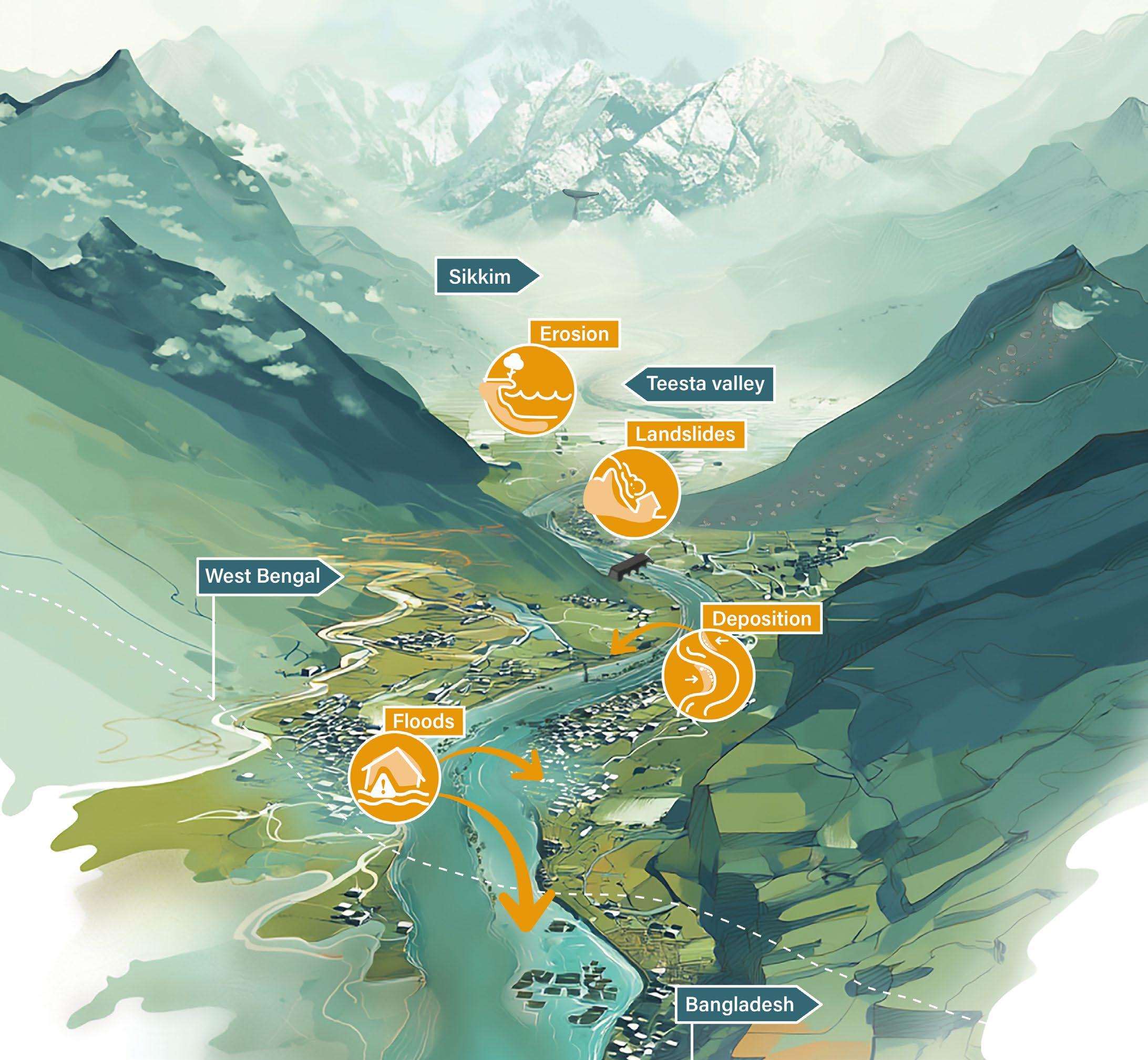 This Scientific Brief is produced by University of Zurich, Geotest and Zoï Environment Network based on The Sikkim flood of October 2023: Drivers, causes, and impacts of a multi-hazard cascade (Sattar et al., 2025).