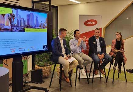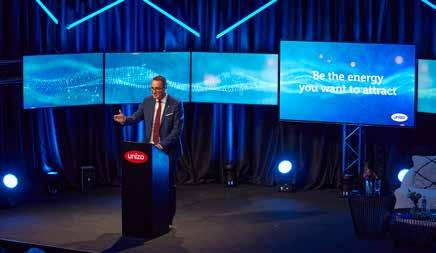ondernemers”. Federaal minister van Energie Tinne Van der Straeten kwam er uitvoerig haar energie beleid toelichten. In zijn toespraak pleitte Danny Van Assche, gedele geerd bestuurder van UNIZO, na drukkelijk voor een beleid dat inzet op het zélf produceren van onze energie: “Het échte beleid is de energietransitie zelf. Wanneer we een toekomst willen waarin we niet afhankelijk zijn van schurkenregimes voor onze energiebevoorrading, dan moeten we onze energie zelf ma ken. UNIZO pleit voor een ‘Energie Transitie Pact’ waarbij alle overhe den in dit land zich volop inzetten om de energie transitie te realiseren.”