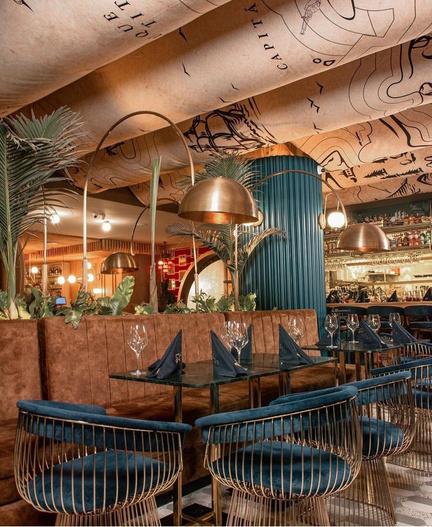 Descortés sumerge a los comensales en un mundo de leyendas, impregnado de lujo, con un mobiliario que evoca el mar y los rayos del sol. Todos los elementos visuales, copas, vasos, platos, cuentan historias de piratas; es el refugio de los amantes de la comida de mar que buscan crear sus propios mitos, que se emocionan con los monstruos de leyenda, con el sonido de las olas y de las garzas, con las aromas del buen vino, el sabor de la cerveza y la mixología con cocteles clásicos y de autor.