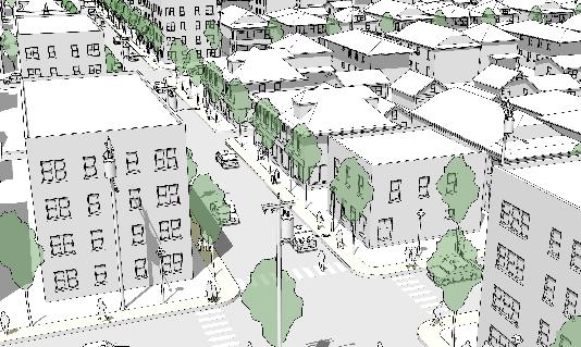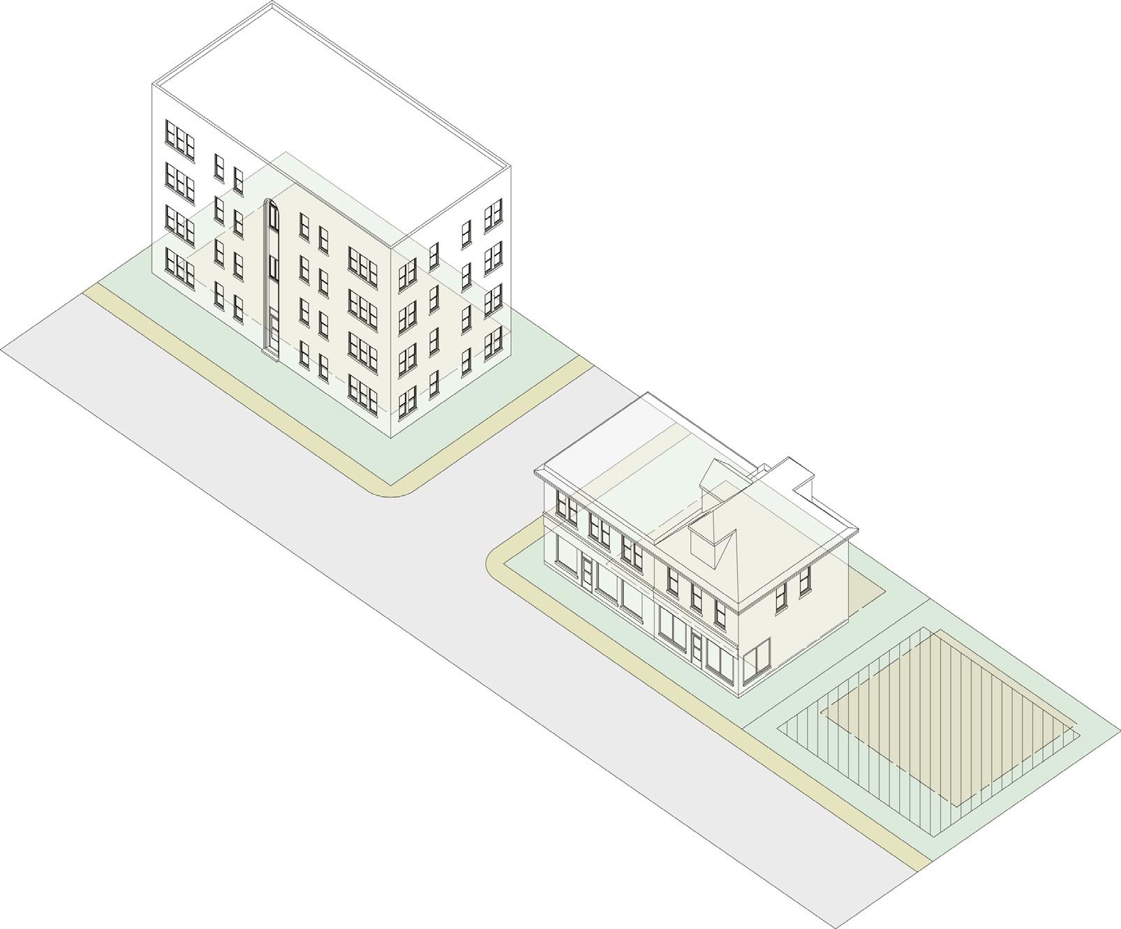 The following diagram illustrates the lot, building placement and height standards set forth in each zoning district.