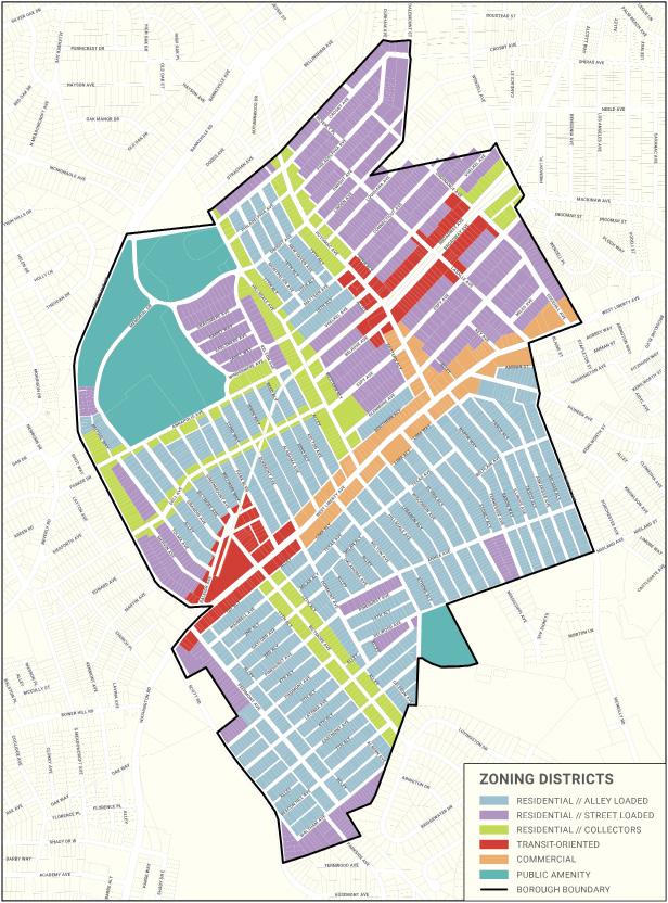 The following zoning districts are hereby established to regulate the orderly use and development of all lands within the Borough. The specific purpose of each district shall serve as guidance for regulating existing and future development. All land within the Borough is classified as one of the following zoning districts hereby established and designated on the Zoning Map as follows: