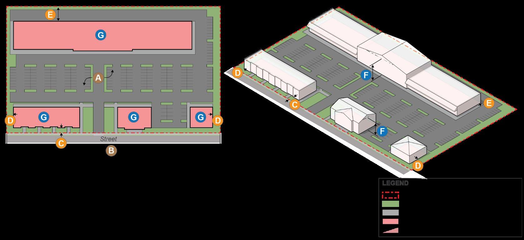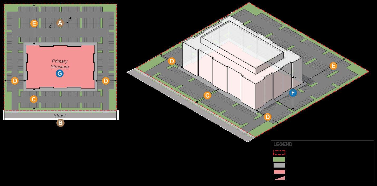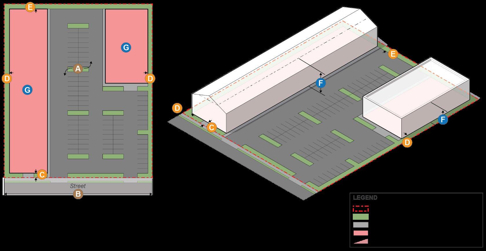 (7) Article 7 – Off-Street Parking and Loading Properties must provide parking on-site at a rate delineated by the proposed land use of the property. Furthermore, there are standards that apply to how parking facilities are designed and located on a site. This Article contains applicable parking and loading-related standards.