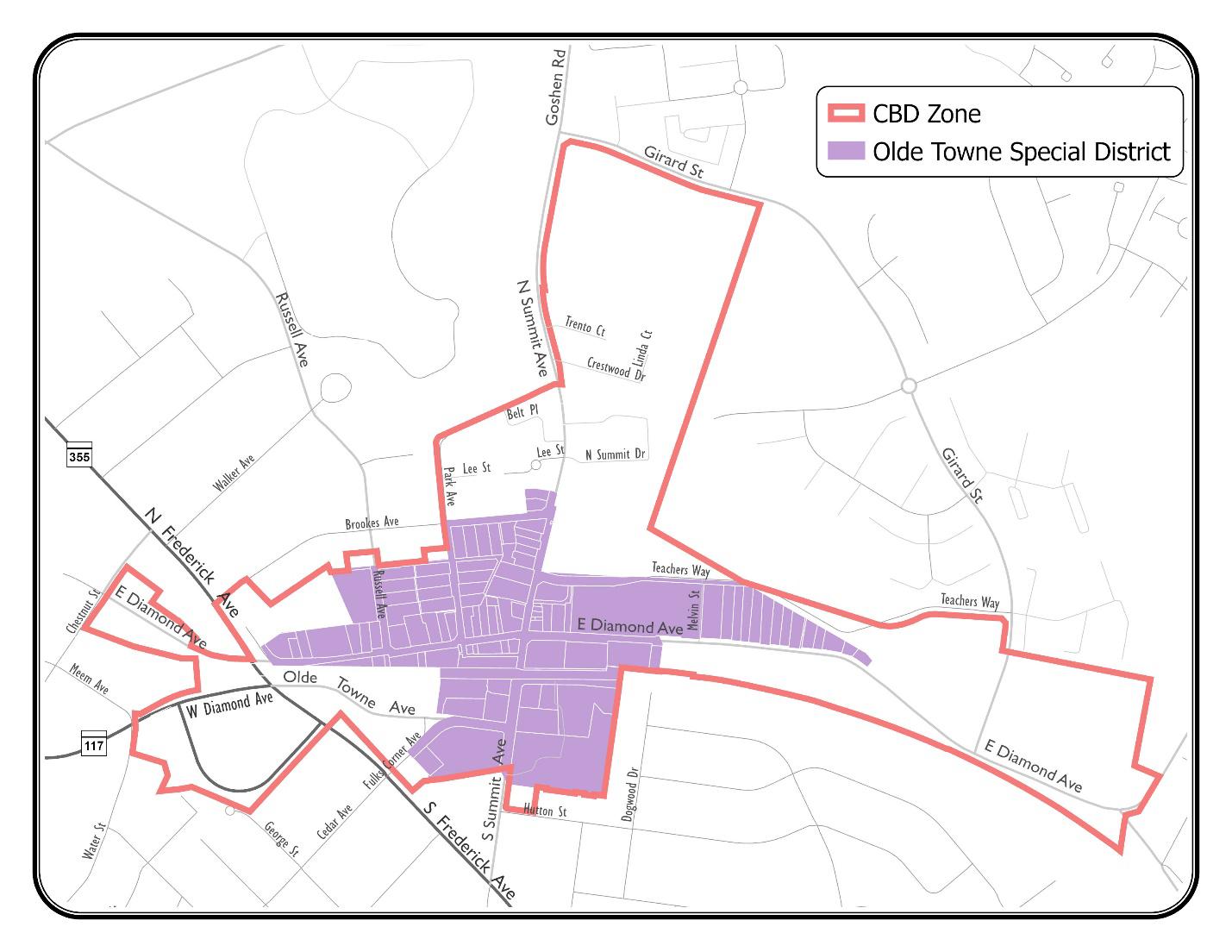 (A) Zoning districts established. The City of Gaithersburg is divided into the following zoning districts pursuant to the City’s Official Zoning Map and sections thereof, which together with all explanatory matter thereon, is hereby adopted by reference and declared to be a part of this Chapter.