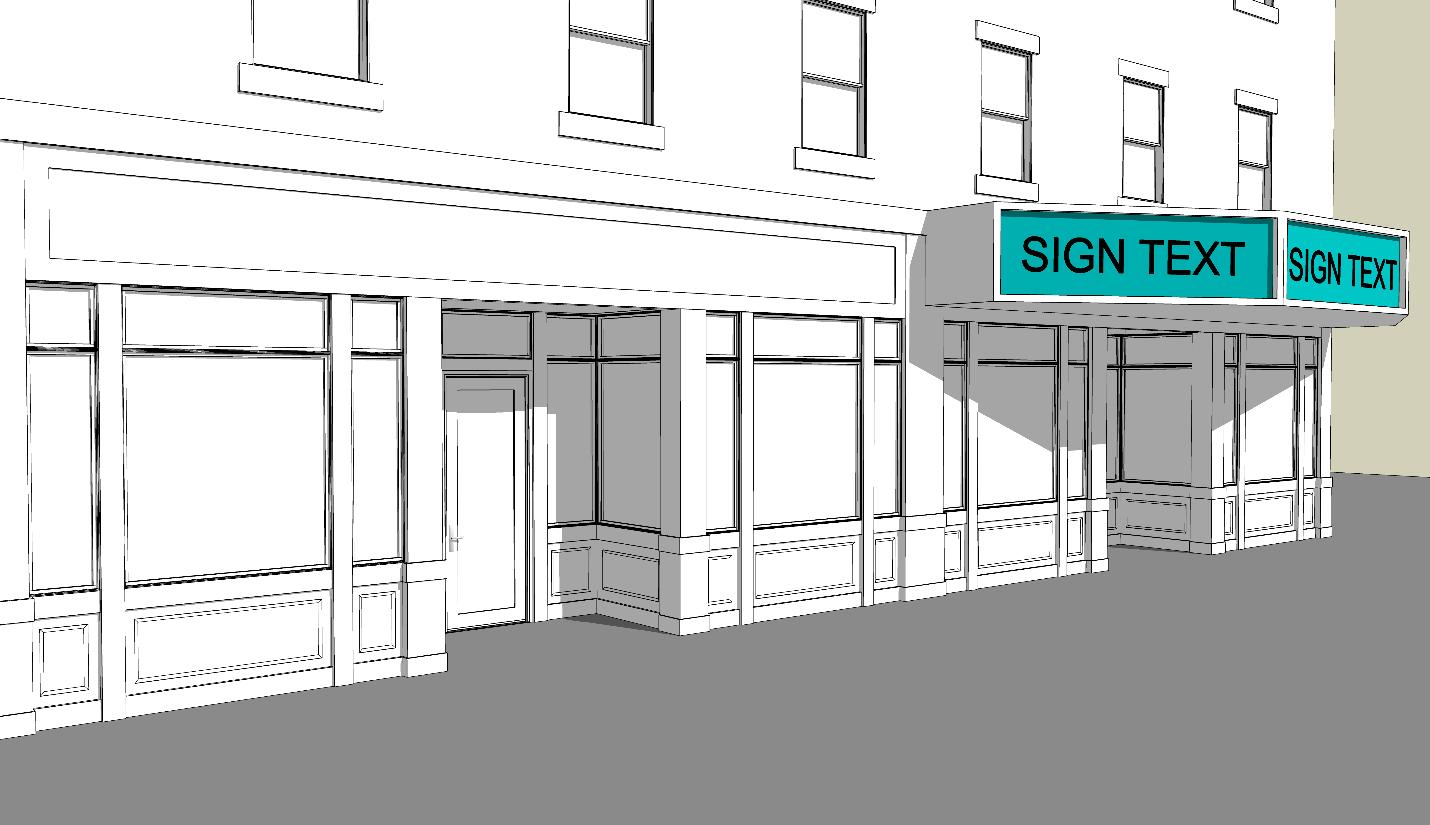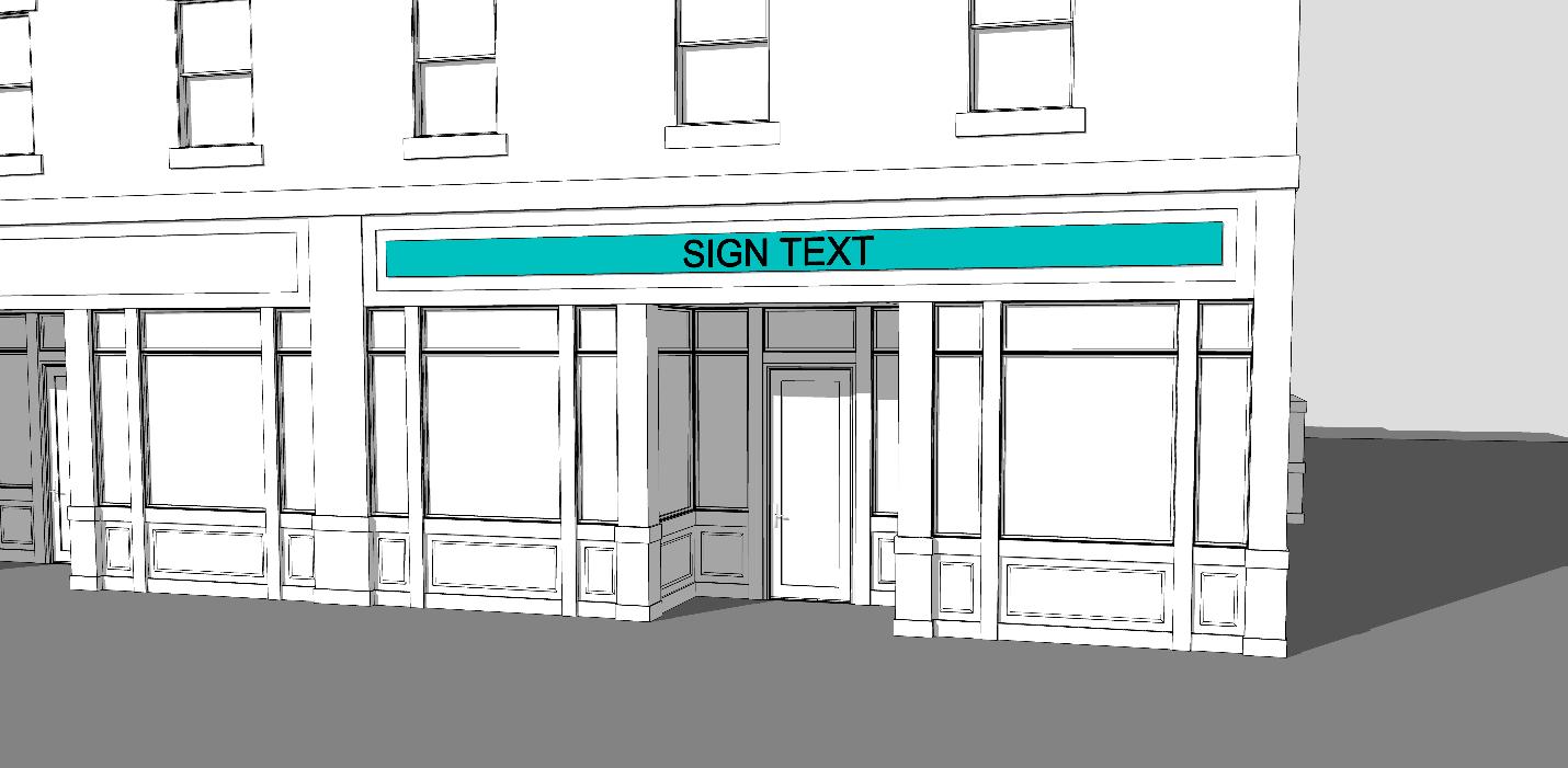 Sign Band. A linear horizontal area of a building façade, usually located between the first and second floors of a building and integrated into the architectural elevation, that has been designated on an approved plan to contain signage.