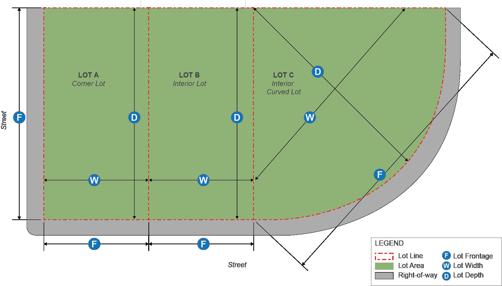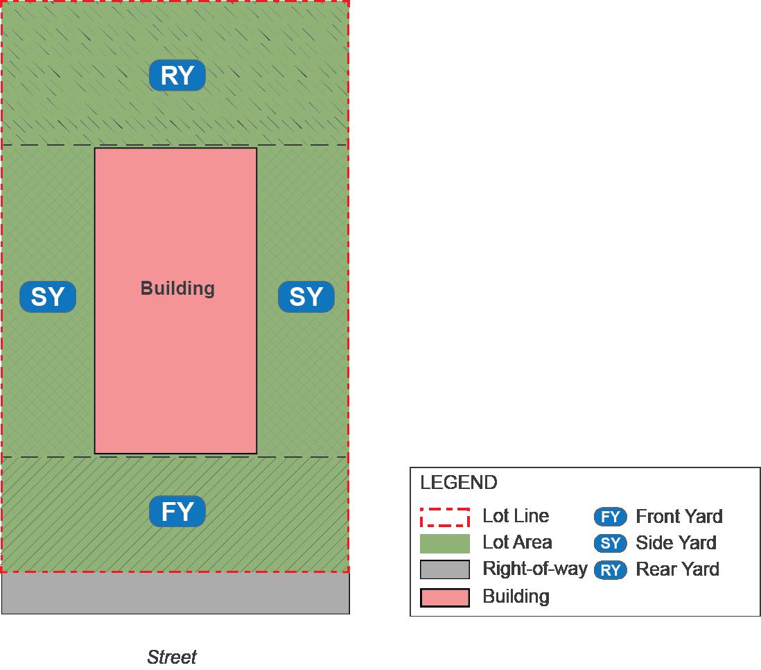 Yard, Front. A front yard is the area of a lot located between the entirety of the front lot line and a line drawn at the principal building foundation wall as it extends to the adjacent side lot line.