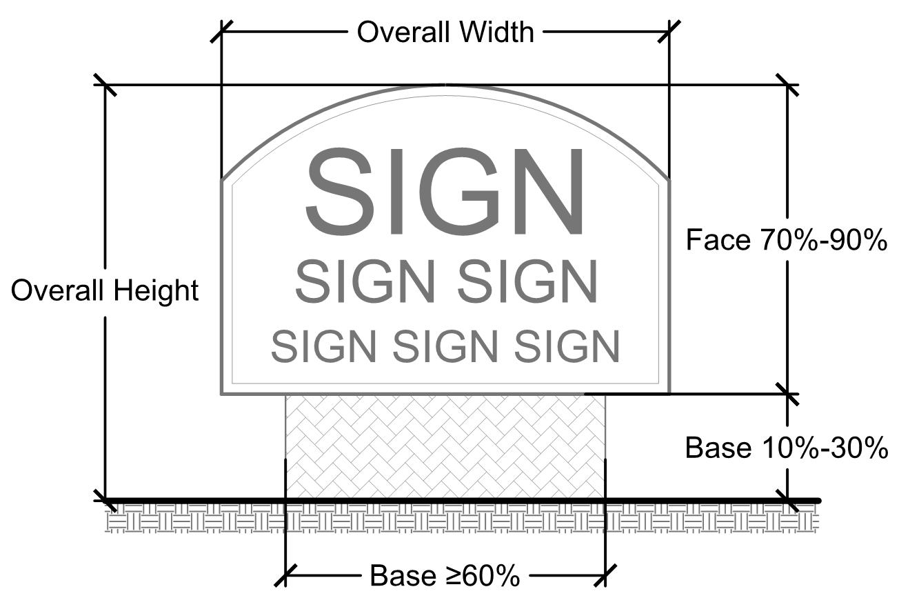(24) Sign: Monument Sign. Any freestanding sign in which the entire bottom of the sign touches the ground and is constructed by affixing wood, stone, masonry, concrete, metal, stucco, or similar veneer to a freestanding solid structure that is either supported by its own ground-mounted base or supported by two column-like supports.