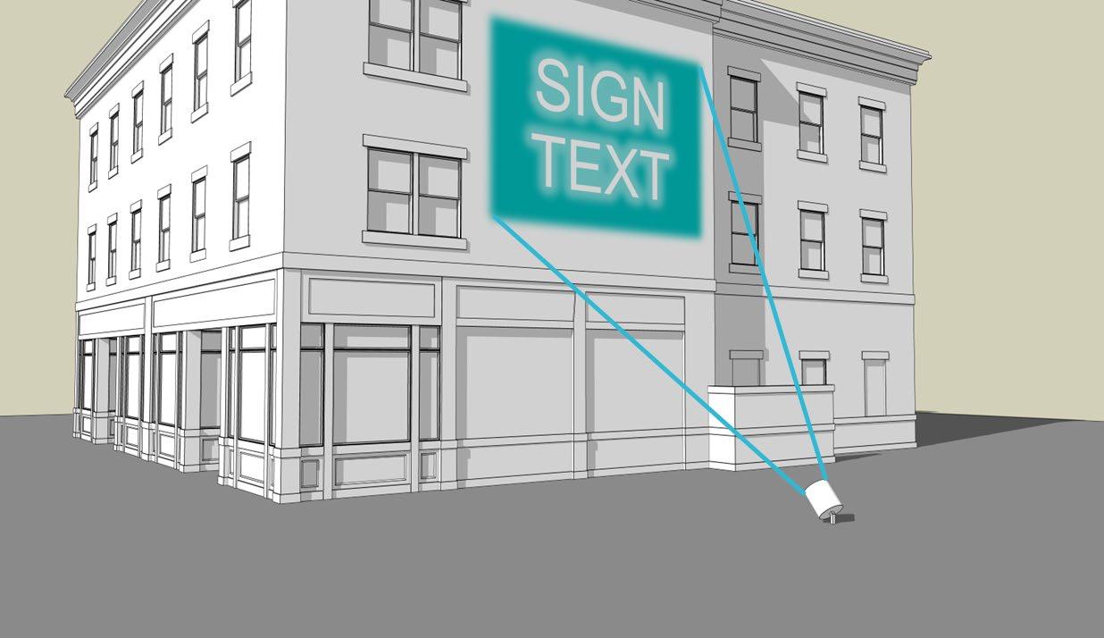 (30) Sign: Projected Image (Temporary) Sign. A type of Temporary Sign whose image is displayed on a building wall, freestanding wall, sidewalk, or other solid structure by means of light projection from a remote electronic device.