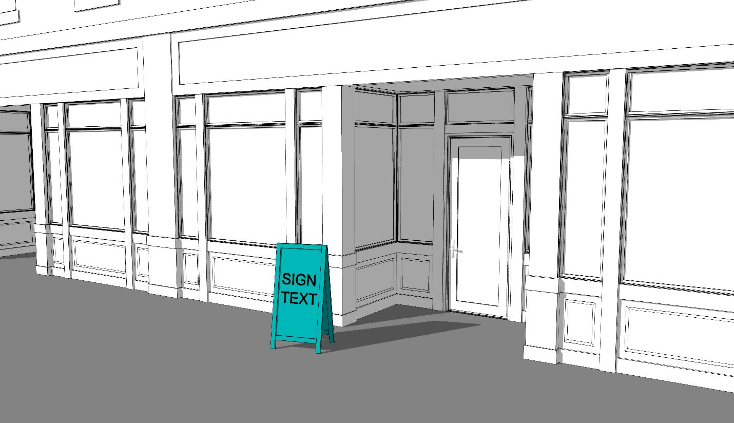 (1) Sign: A-frame Sign. A portable sign used on a sidewalk, or similar location, consisting of one or two sign faces attached at the top with hinges or similar device allowing for east transport. Also referred to as sidewalk signs or sandwich boards.