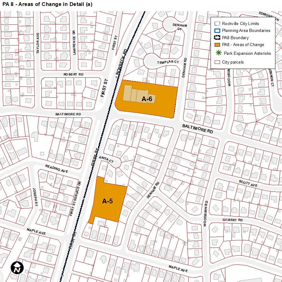 The RMD-Infill zone was developed to implement these housing types, with the exception of small apartment buildings of up to six units. The zoning ordinance will be revised to permit these housing types where identified by the land use map and within Planning Areas.