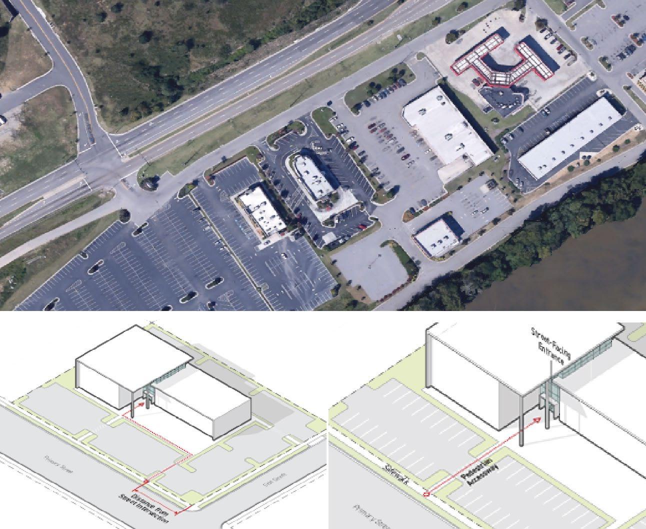 Transportation is a key challenge in Danville, and focusing investments along primary roadways will improve connectivity by placing more residents within walking distance of cross-city connectors. This will also support public transportation, which requires a critical mass of people for regular routes and frequent stops. The Zoning and Subdivision Ordinances should promote higher density and mixed-use development along transportation corridors to enhance accessibility. The Zoning and Subdivision Ordinances should also aim to promote safe and desirable corridors for all modes of transportation by improving safety, minimizing the visual impact of parking lots, and prioritizing pedestrian-friendly spaces that can encourage walking, biking, and public transportation. These spaces can also act as gateways to help reinforce the unique identities of Danville’s neighborhoods while enhancing the city’s overall character.