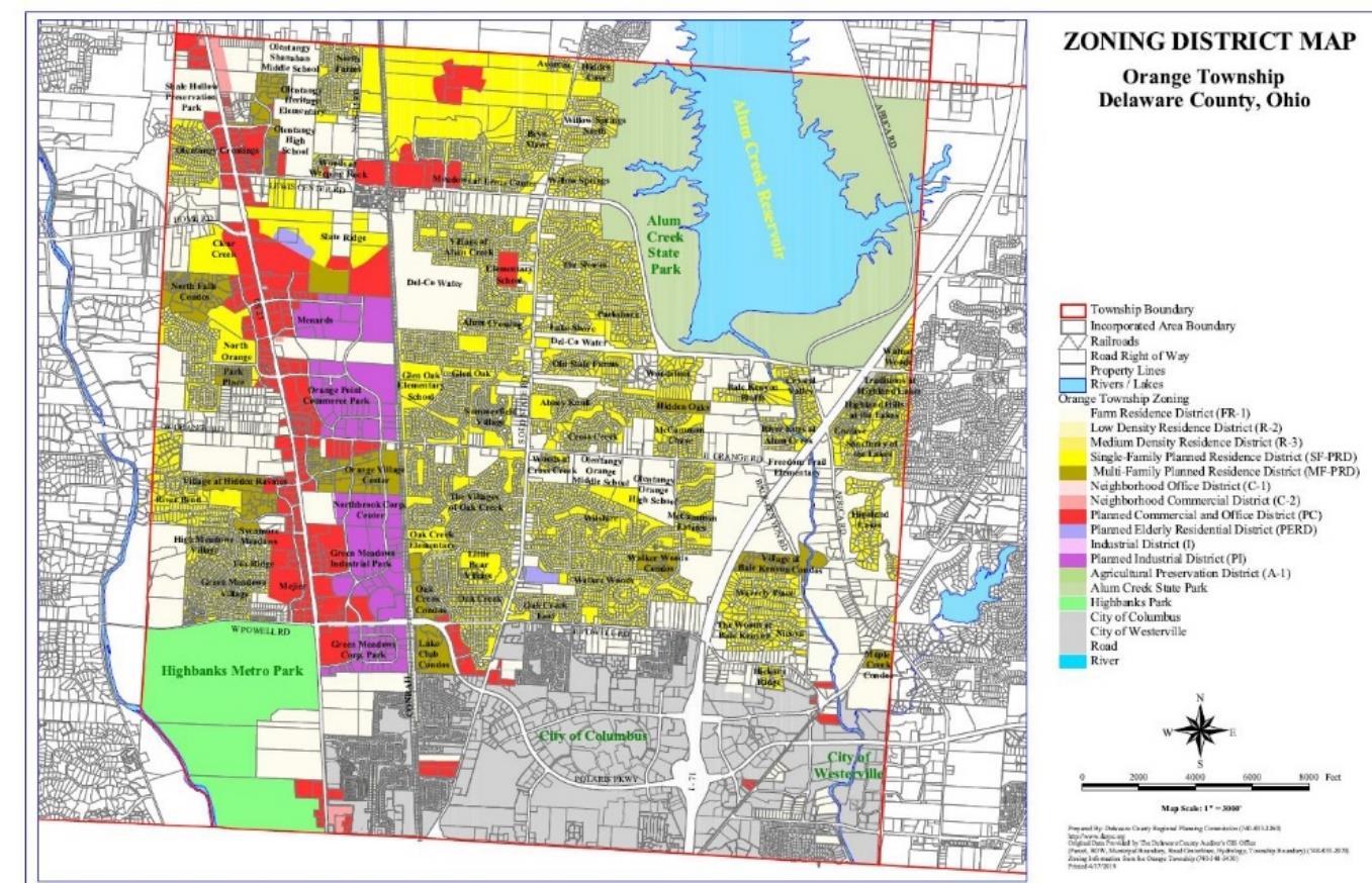 It is positive that Orange Township has a corridor that is such a strong anchor for commercial activities and workers along US-23. As the community grows, a revision of the Zoning Resolution will provide opportunities to improve this commercial corridor and create the strong sense of place that the community desires. The Township should think critically about where undeveloped or agricultural land will face development pressures, and critically assess the zoning regulations in those areas. Furthermore, there is a lot of opportunity to increase the kinds of commercial uses, and the mix of uses present in most of the non-residential districts.