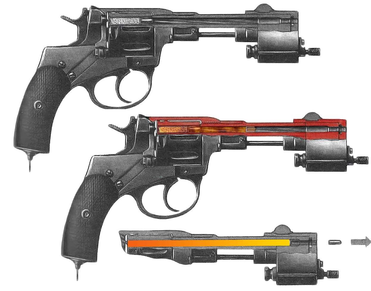 Bratři Mitinové si kromě tlumičů připsali na konto i jednu speciální tlumenou zbraň. Šlo o návrh zcela neúspěšný, ale technicky mimořádně zajímavý, který dosahoval utlumení revolveru zcela jiným způsobem. Patent podaný v roce 1929 demonstroval silně upravený revolver Nagant i jeho náboj, jenž byl opatřen podkaliberní střelou ráže 5,6 mm, přičemž volný prostor v nábojnici a posléze v hlavni vymezoval sabot (profil, v němž je vsazena střela) vyplňující prostor mezi vývrtem a povrchem střely. Na ústí hlavně se nacházel druhý spřažený válec, jenž měl na čele otvor, kterým mohla prolétnout střela, ale sabot se v něm zasekl, a zabránil tak spalným plynům uniknout z ústí. Odfuk nastal až v okamžiku, kdy střelec uvolnil spoušť, čímž došlo k uvolnění mezery mezi válcem a hlavní. V tu chvíli ale již s tlakem a teplotou, jež při úniku ze systému negenerovaly výrazný hluk. V kombinaci s podzvukovou střelou by měl být výstřel zcela mimořádně tichý a ústí navíc nebylo třeba osazovat rozměrným tlumičem. Naopak slabiny spočívaly mimo jiné ve větší složitosti, nutnosti důkladného utěsnění mezer vůči tlakům nebo v tom, že po výstřelu bylo třeba extrahovat nejen prázdné nábojnice, ale i saboty z předního válce. Nelze se divit, že zůstalo jen u návrhu. Není dokonce jisté, jestli vůbec vznikl prototyp.