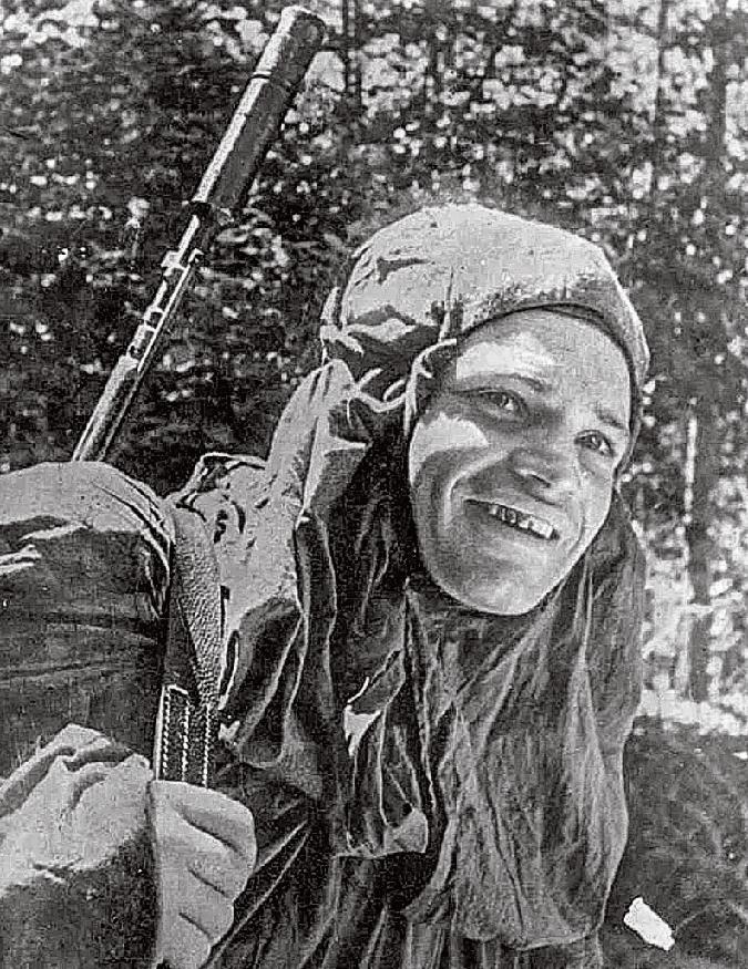 ← Sovětský partyzán vyzbrojený samonabíjecí puškou SVT-40 a ručním granátem RGD-33 na podzim 1941