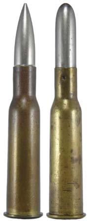 náboje bylo opatřeno střelou o váze 210 gr s kulatým čelem. Za zmínku stojí rovněž potažení olověného jádra pláštěm ze slitiny mědi. Střela je totiž natolik rychlá, že měkké olovo se „trhá“ již v drážkách, což má za následek zanášení hlavně olovem a snížení přesnosti.
