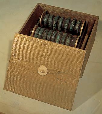 Kanopické nádoby s orgány zesnulého se uložily do truhly.