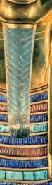 Obřad „otevírání úst“ Po balzamování kněží provedli také rituál „otevírání úst“, který měl magicky probudit životní funkce zesnulého. Na fotografii vidíme některé nástroje, které se při obřadu používaly. Vidlice sloužila k dotyku úst mumie, vázy obsahovaly posvátné oleje a do pohárů se nalévaly obětní nápoje.