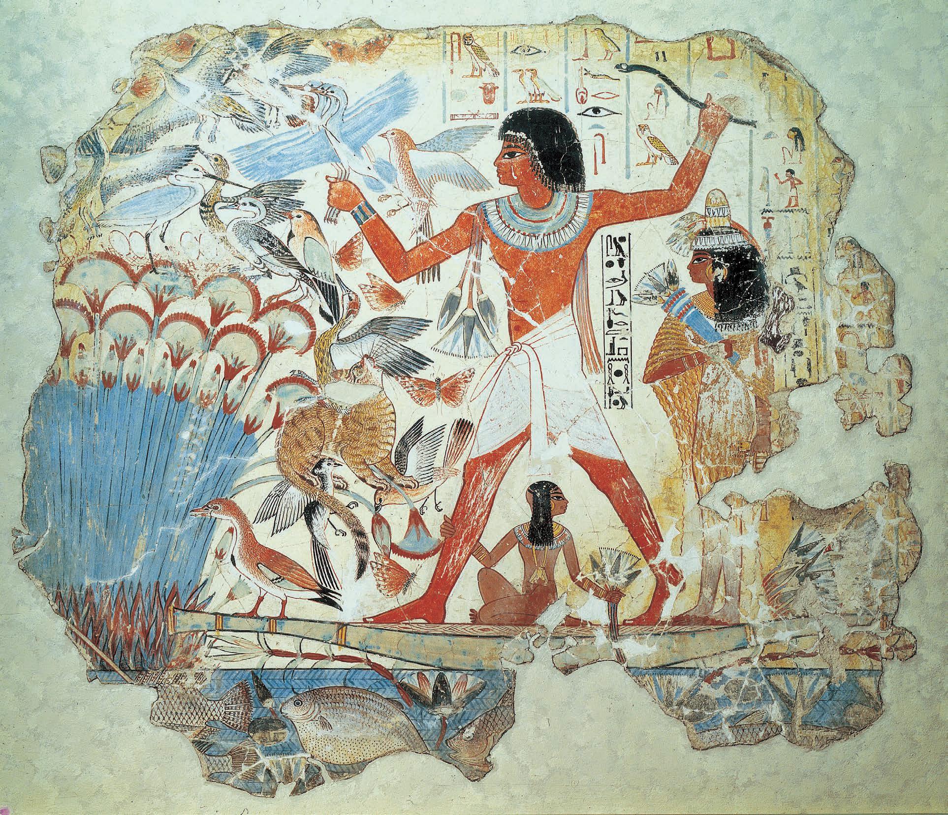 Bažiny porostlé šáchorem papírodárným byly domovem mnoha druhů ptáků. K jejich lovu se používala tyč, kterou lovci na opeřence vrhali, když vylétali z houští.
