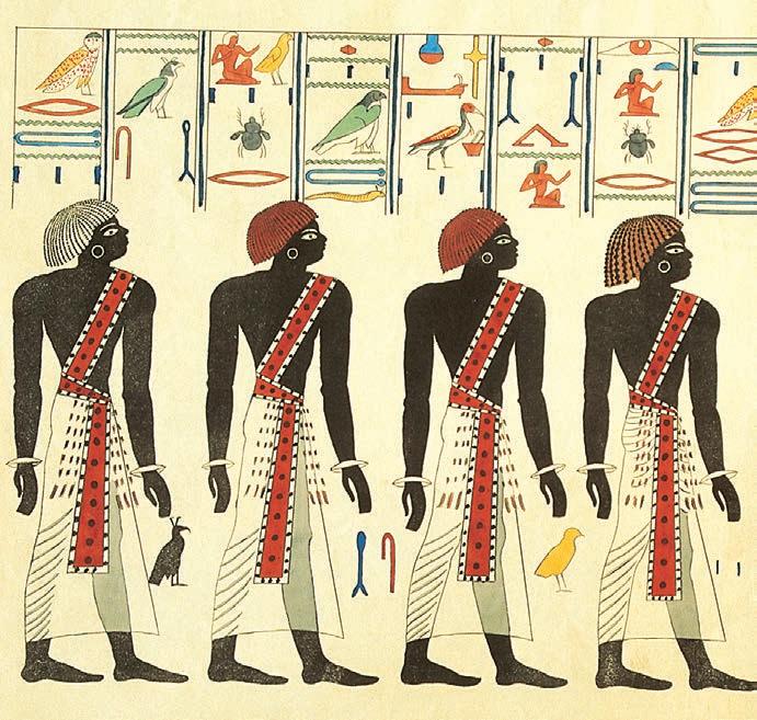 Thutmose I. rozšířil egyptskou nadvládu nad Núbijci na jihu, kteří jsou zobrazeni na ilustraci v tradičním oděvu, a nad obyvateli Sýrie a Palestiny na severu. Hlavním cílem těchto výpadů bylo získání přístupu k obchodním cestám, po nichž se dopravovala měď, stříbro, oleje, dřevo i otroci.
